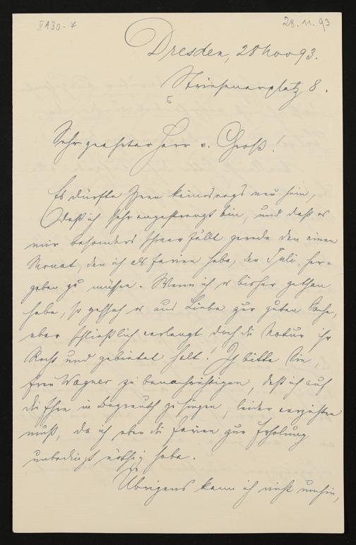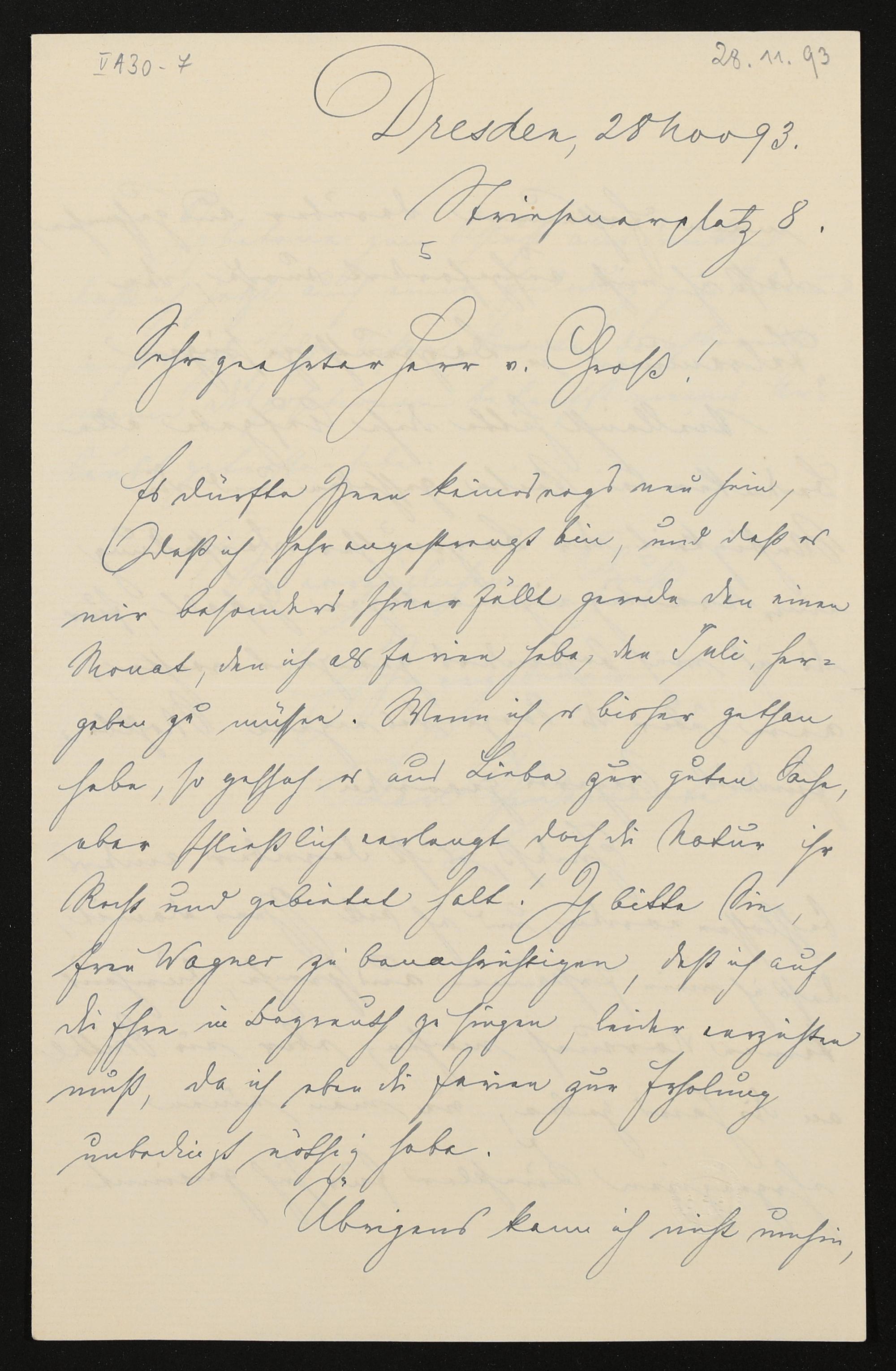 eigenhändiger Brief von Karl Scheidemantel an Adolf von Gross