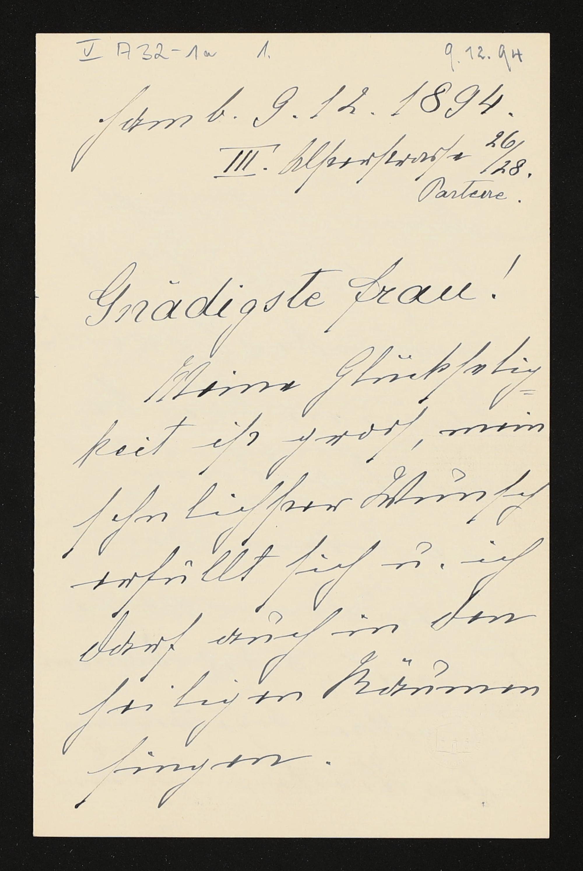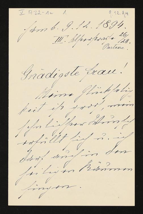 eigenhändiger Brief von Ernestine Schumann-Heink an Cosima Wagner
