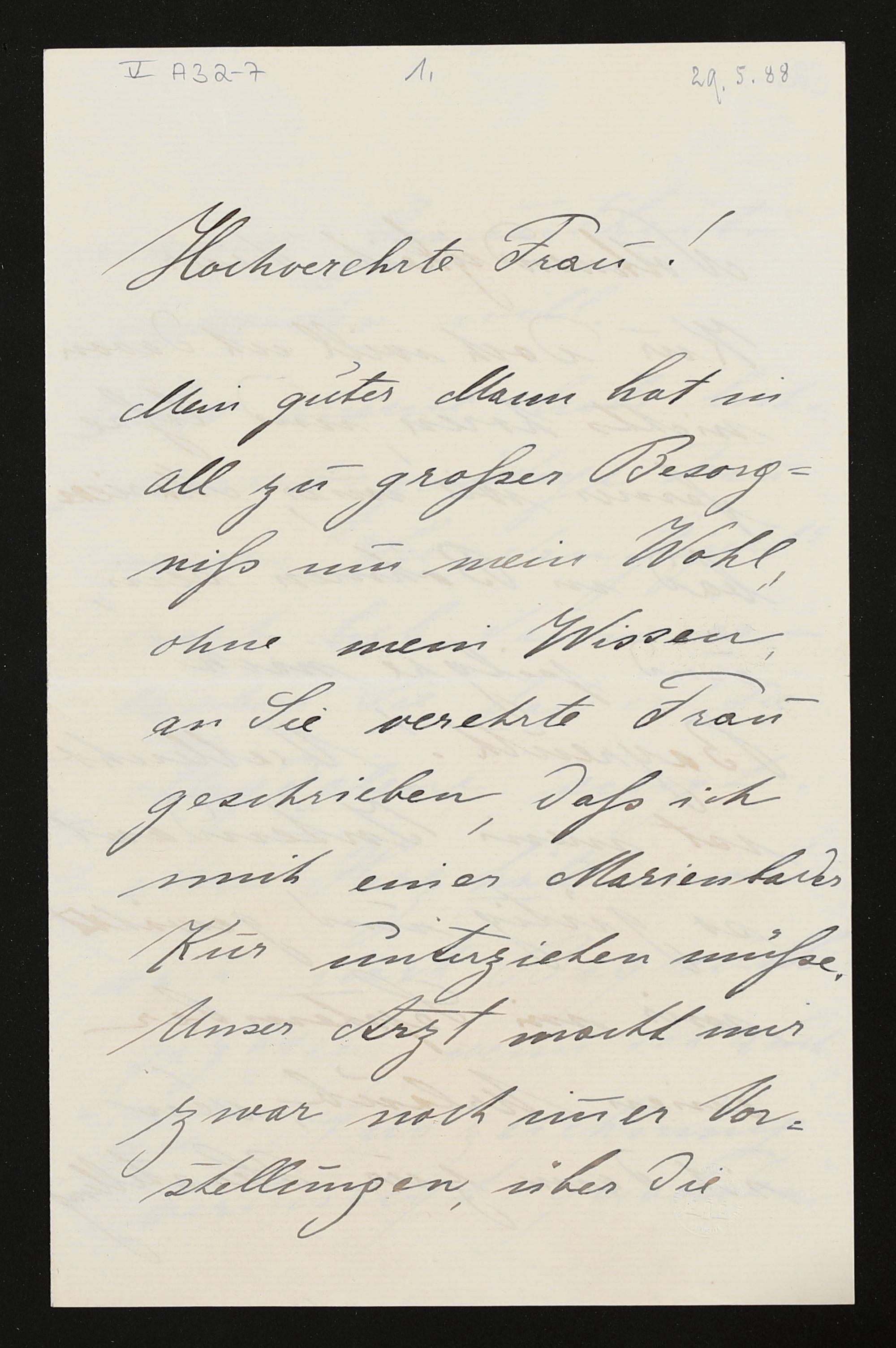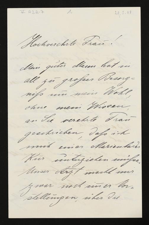 eigenhändiger Brief von Gisela Staudigl an Cosima Wagner