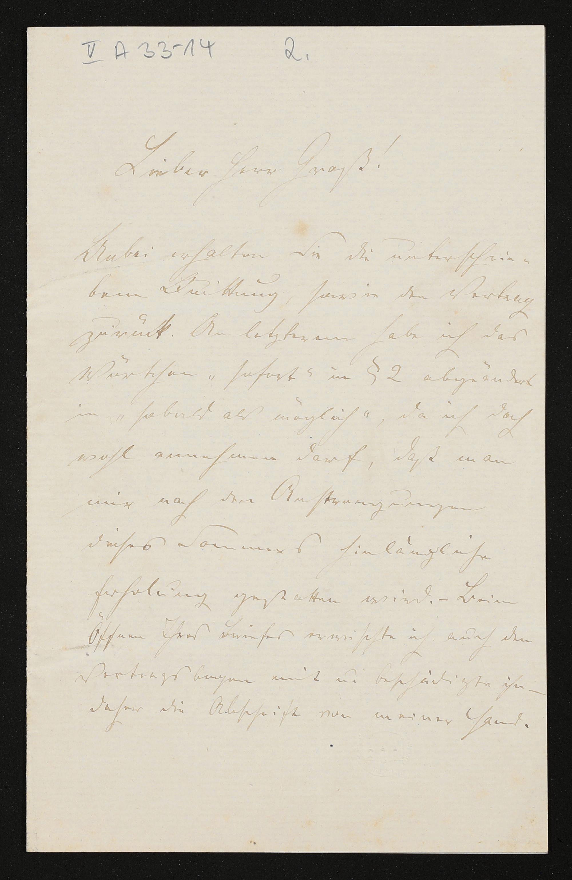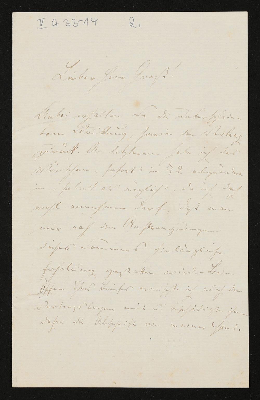 eigenhändiger Brief von Georg Unger an Adolf von Gross