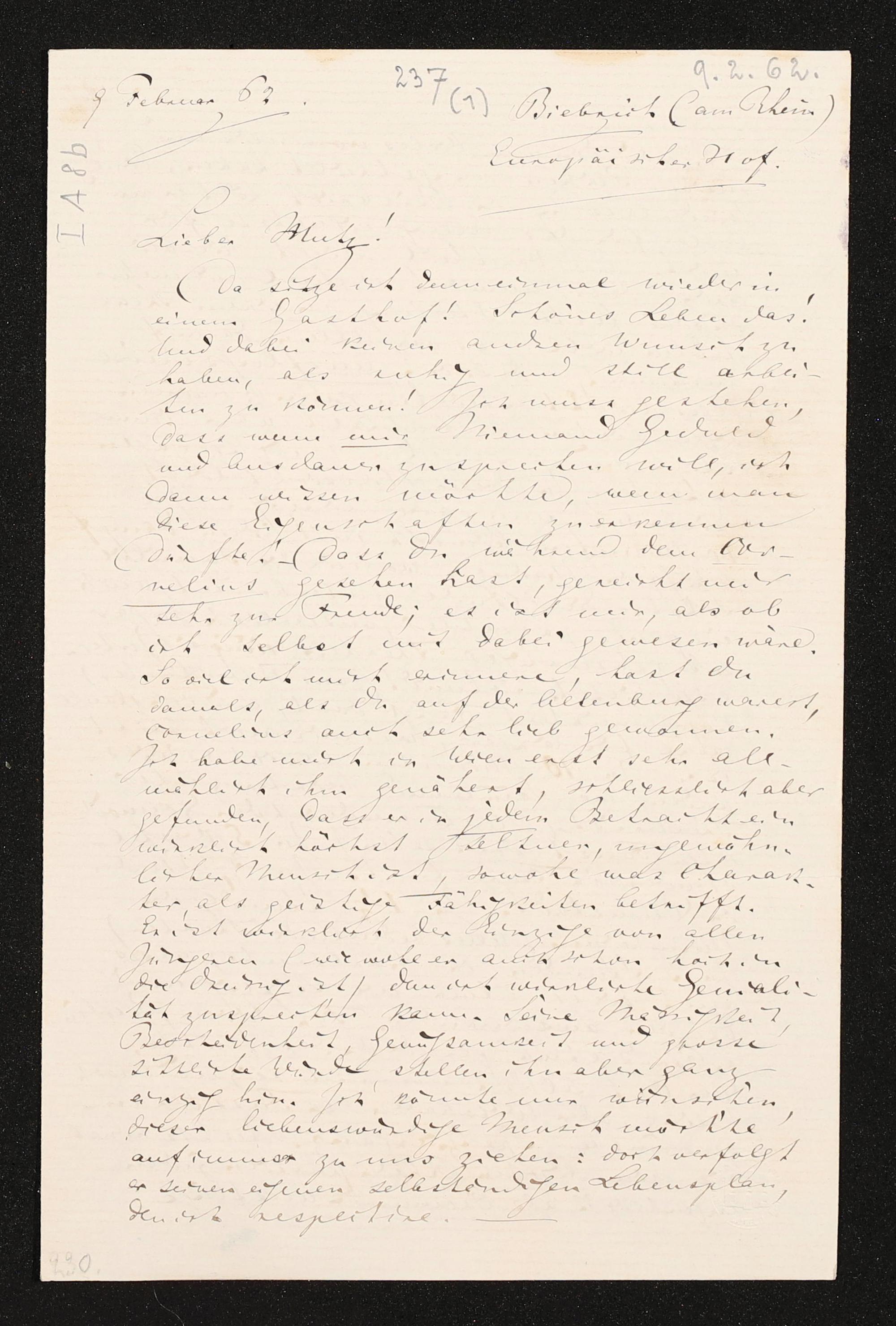 eigenhändiger Brief von Richard Wagner an Minna Wagner