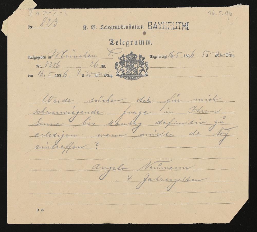 Telegramm von Angelo Neumann an Haus Wahnfried