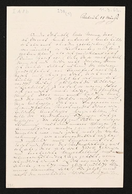 eigenhändiger Brief von Richard Wagner an Minna Wagner