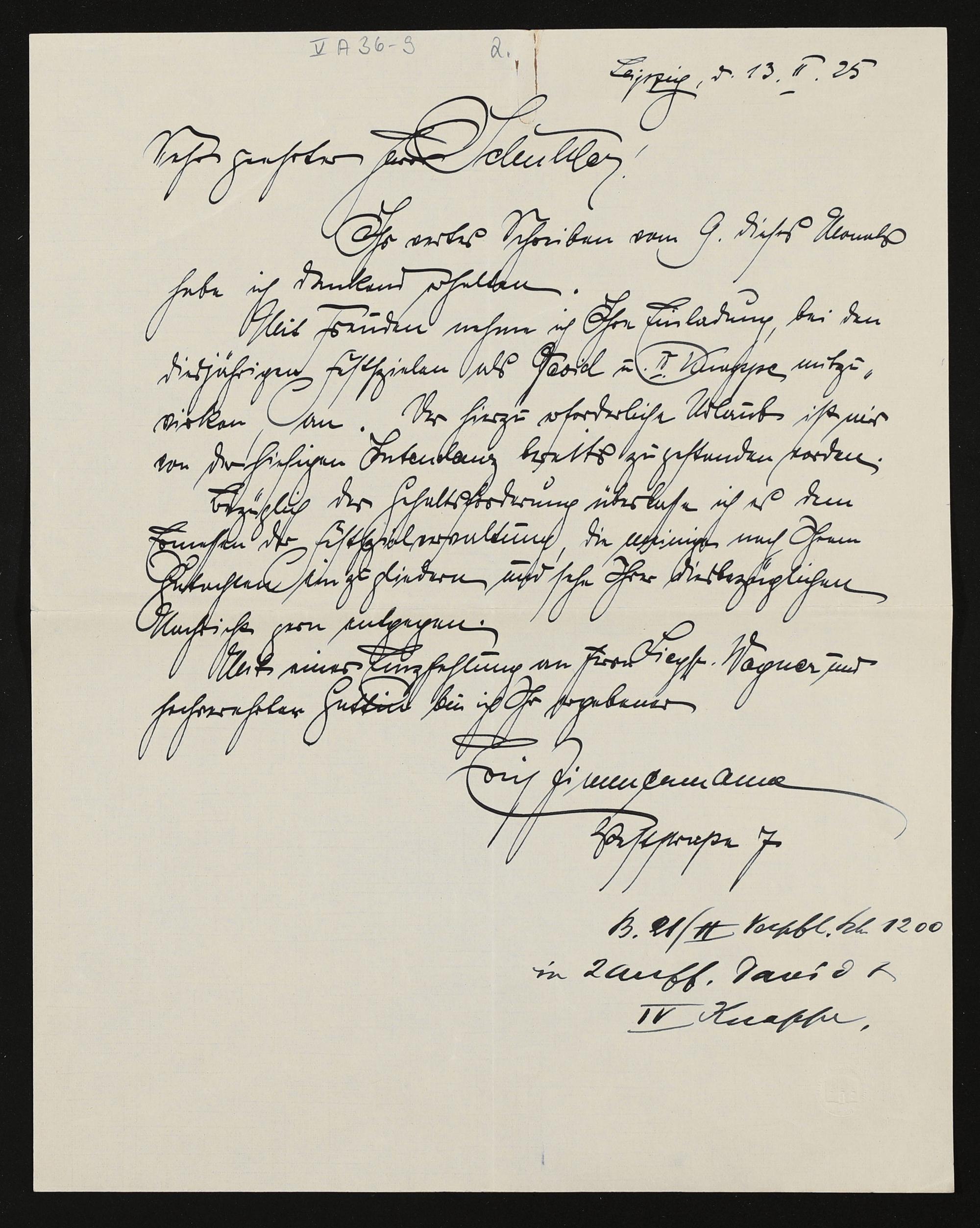 eigenhändiger Brief von Erich Zimmermann an Friedrich Wilhelm Schuler