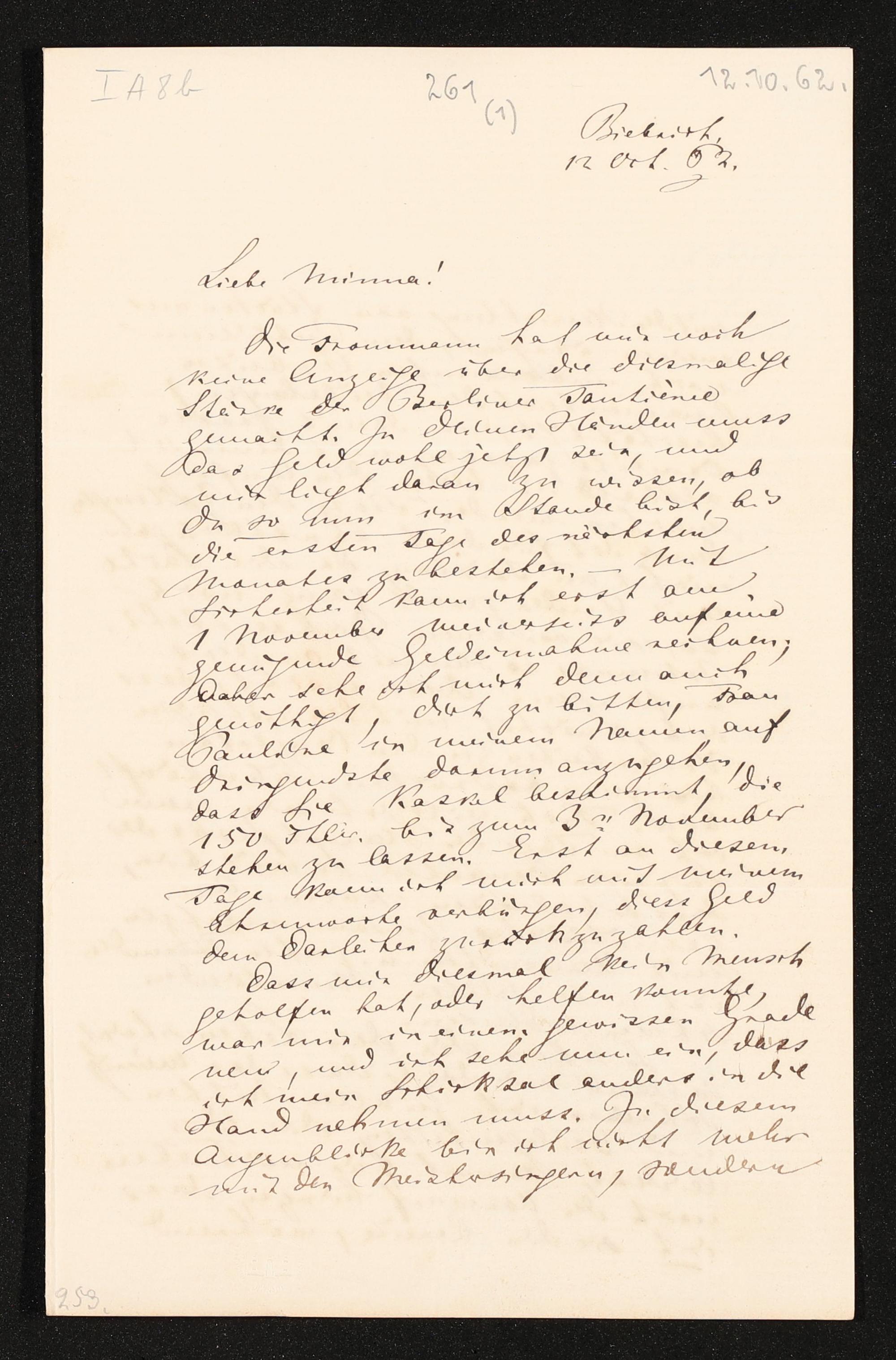 eigenhändiger Brief von Richard Wagner an Minna Wagner