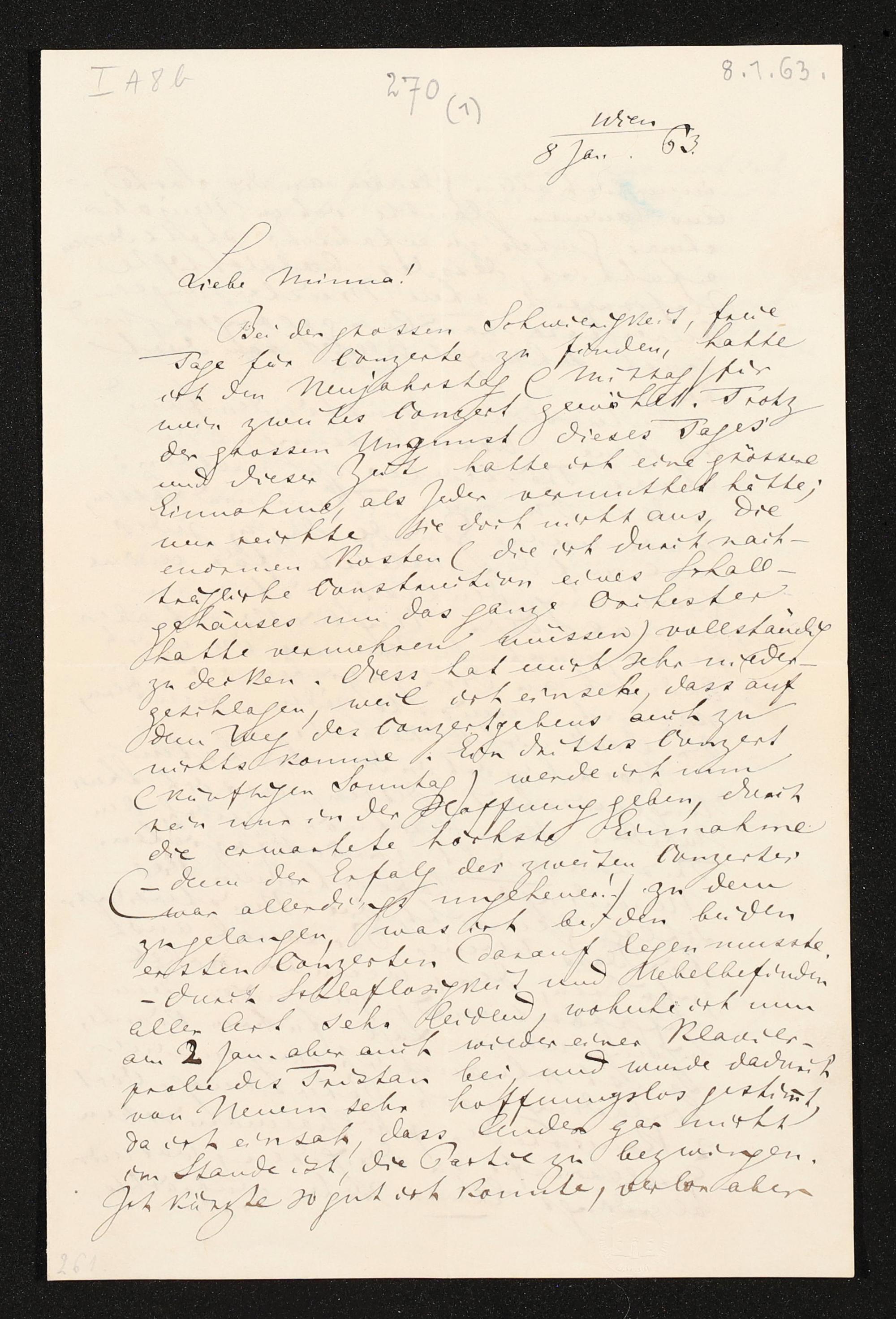eigenhändiger Brief von Richard Wagner an Minna Wagner