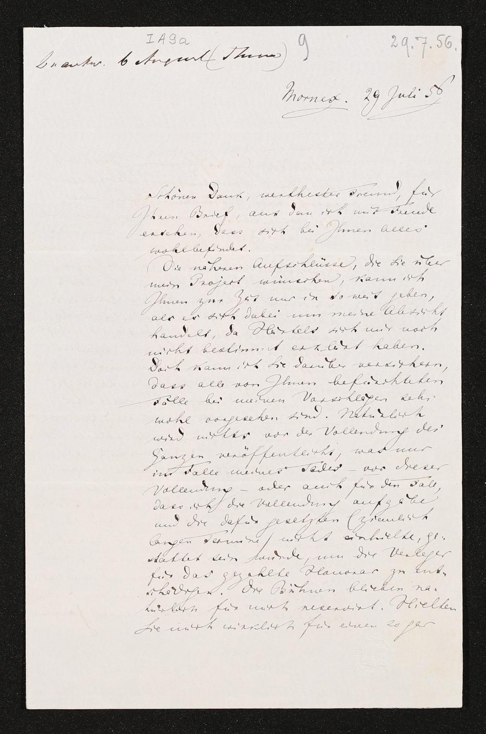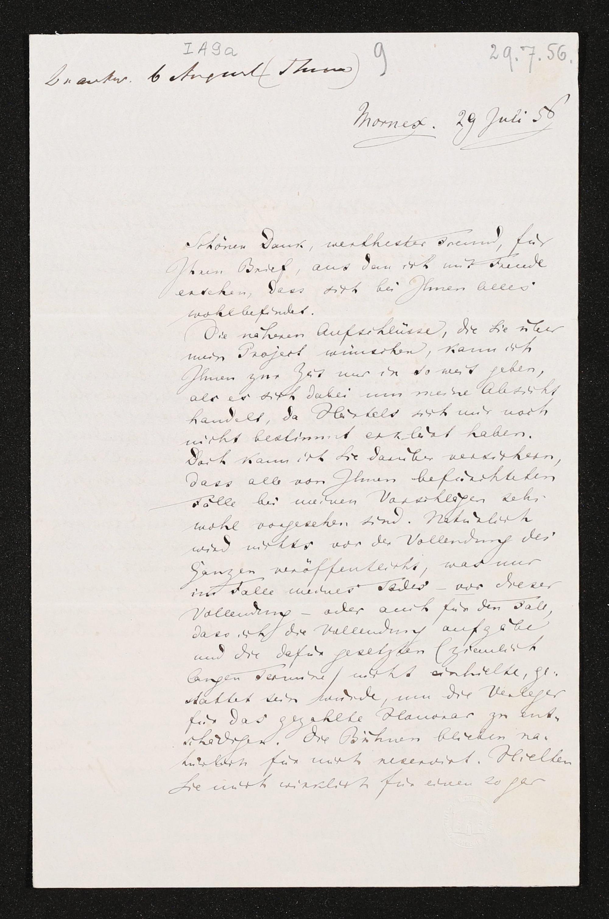 eigenhändiger Brief von Richard Wagner an Otto Wesendonck