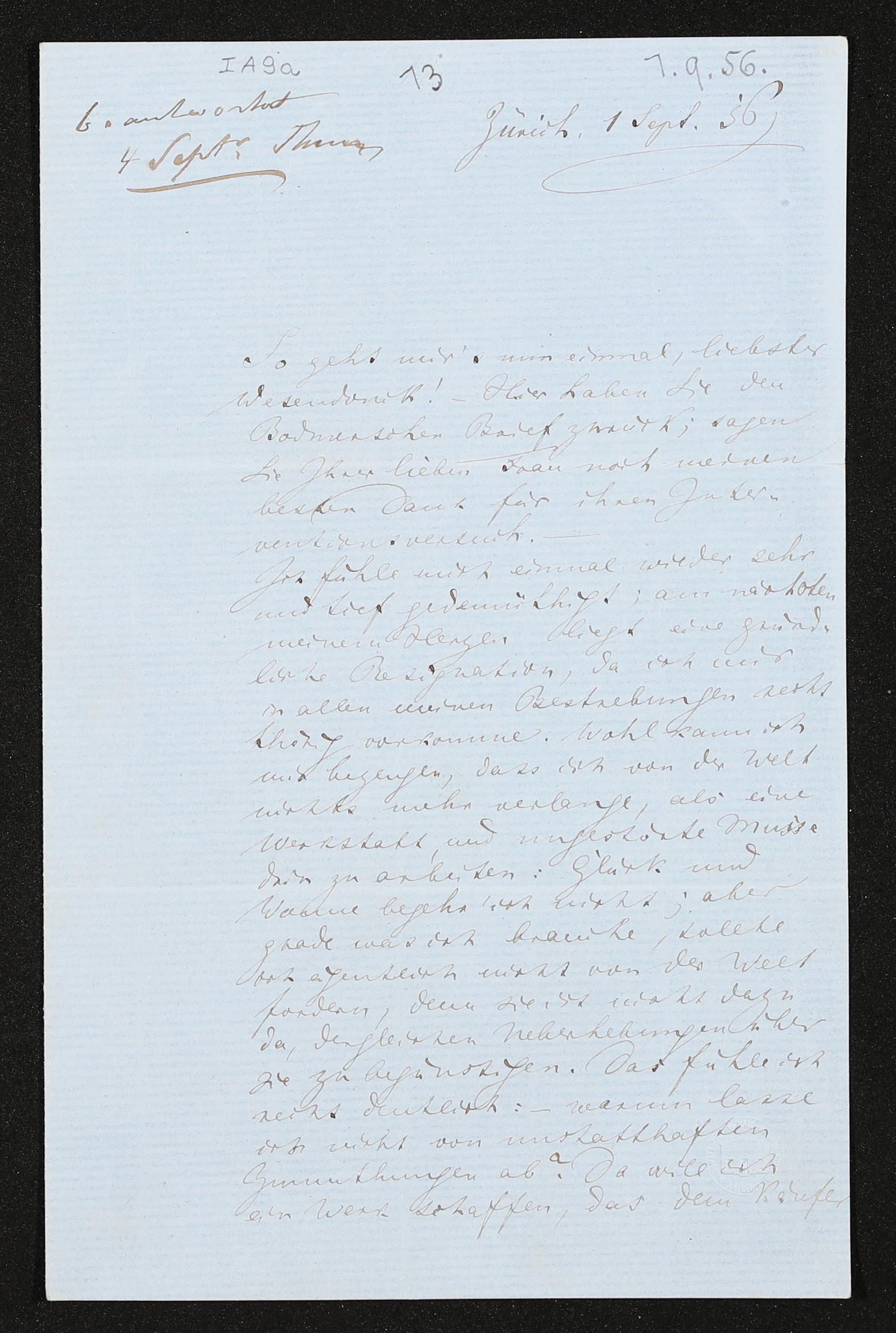 eigenhändiger Brief von Richard Wagner an Otto Wesendonck