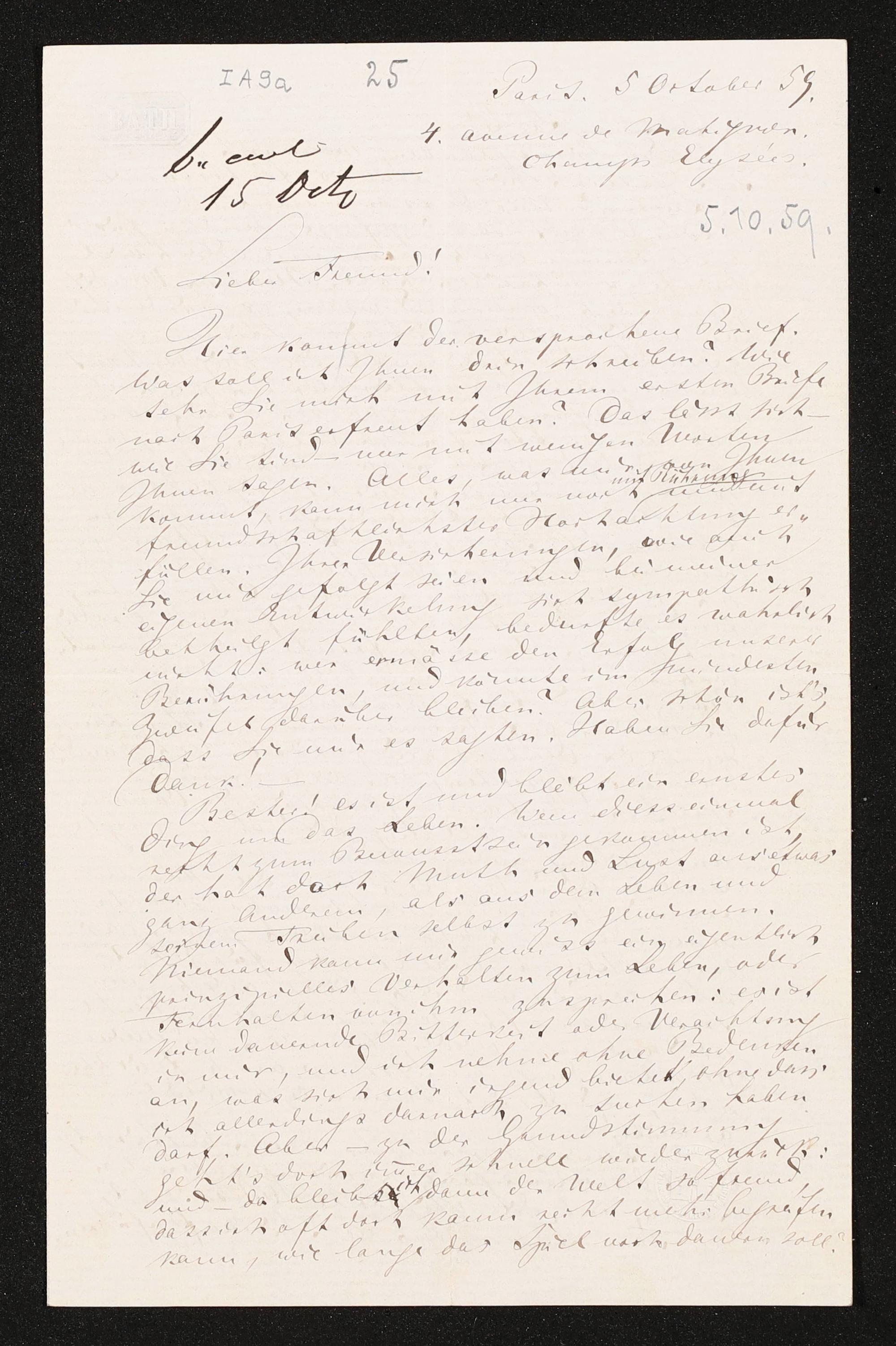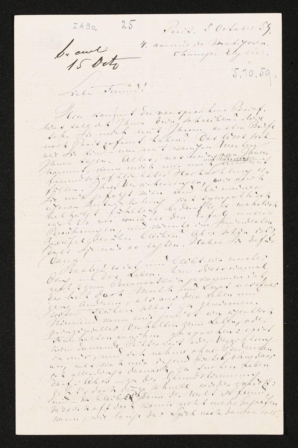 eigenhändiger Brief von Richard Wagner an Otto Wesendonck