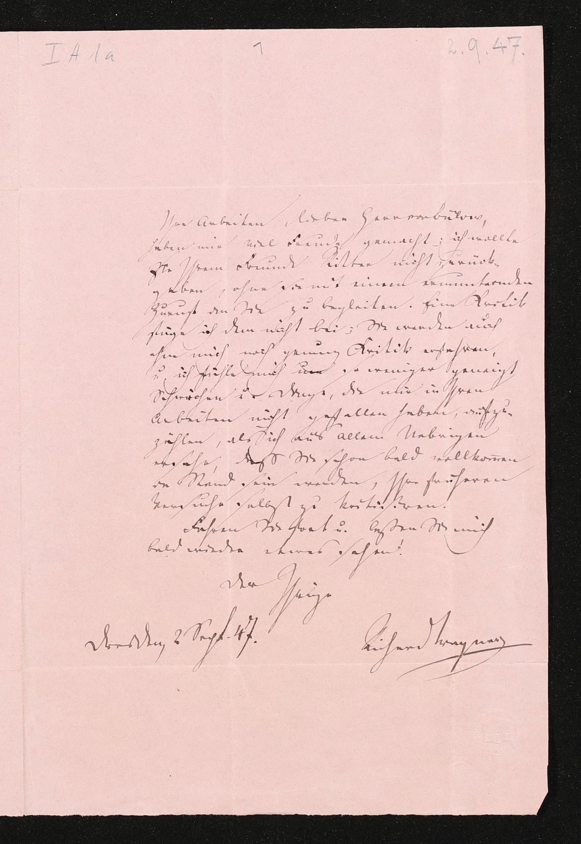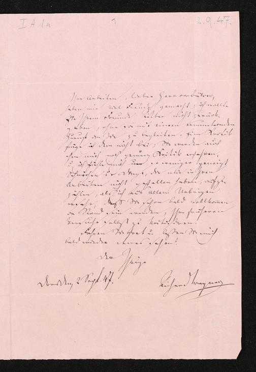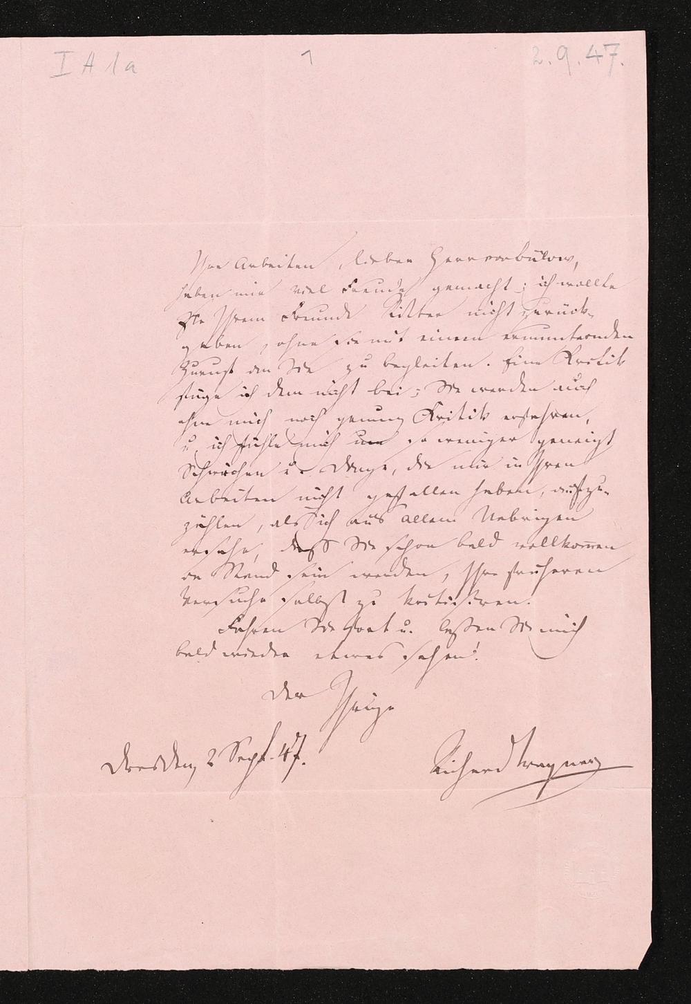 eigenhändiger Brief von Richard Wagner an Hans von Bülow