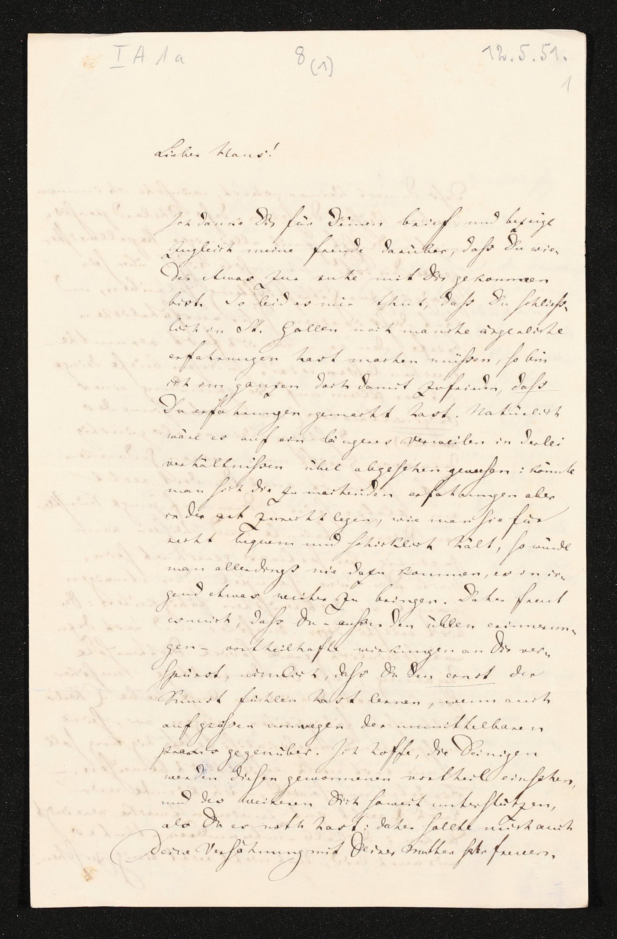 eigenhändiger Brief von Richard Wagner an Hans von Bülow