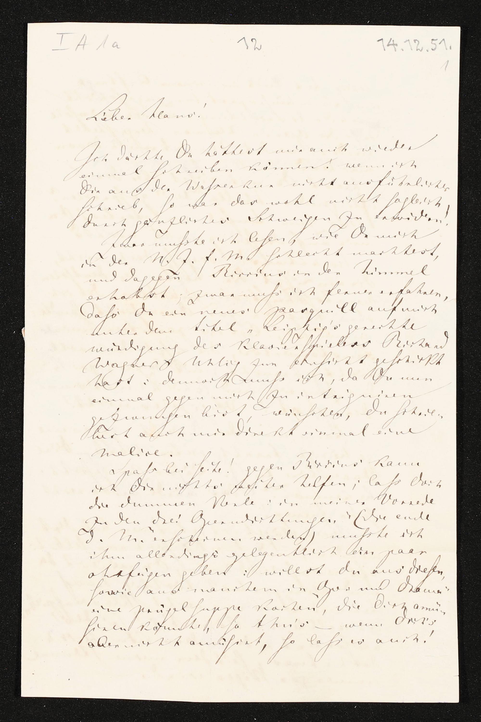 eigenhändiger Brief von Richard Wagner an Hans von Bülow