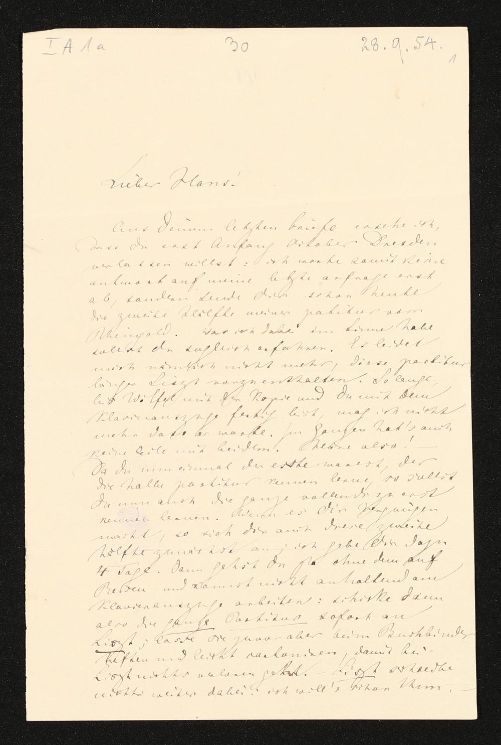eigenhändiger Brief von Richard Wagner an Hans von Bülow
