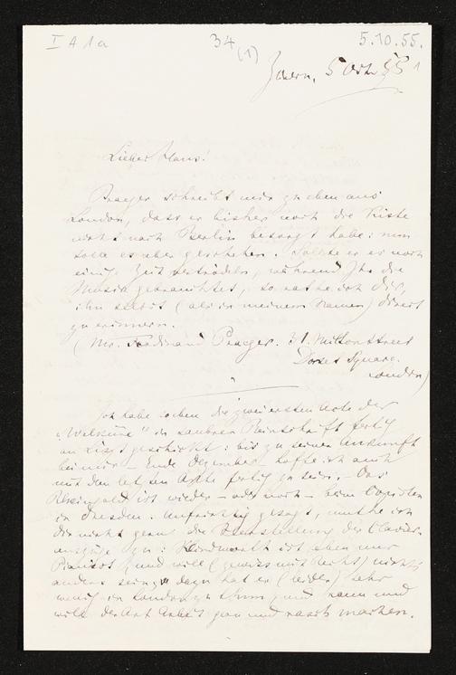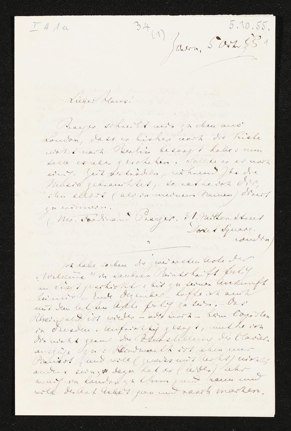 eigenhändiger Brief von Richard Wagner an Hans von Bülow