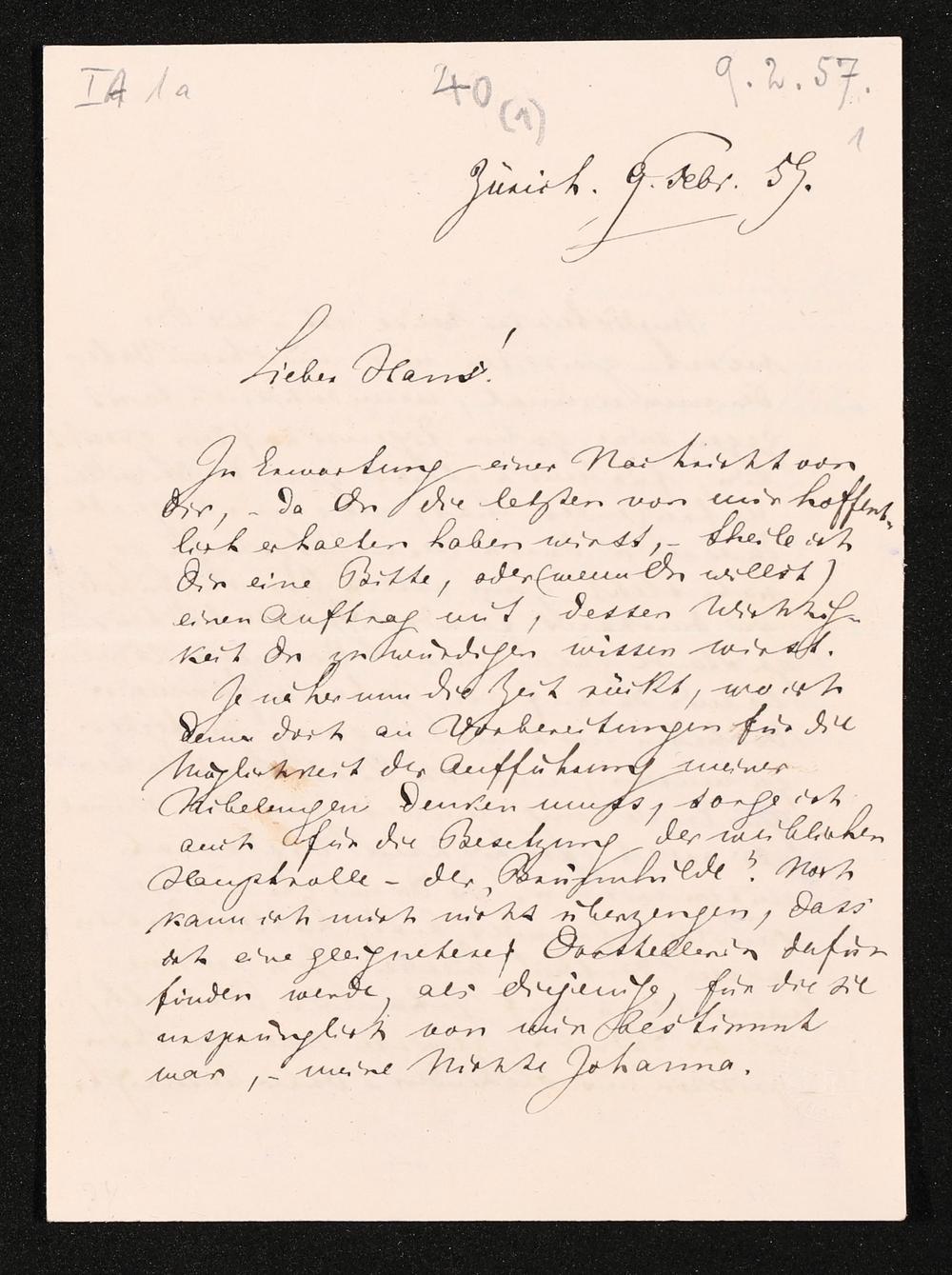 eigenhändiger Brief von Richard Wagner an Hans von Bülow