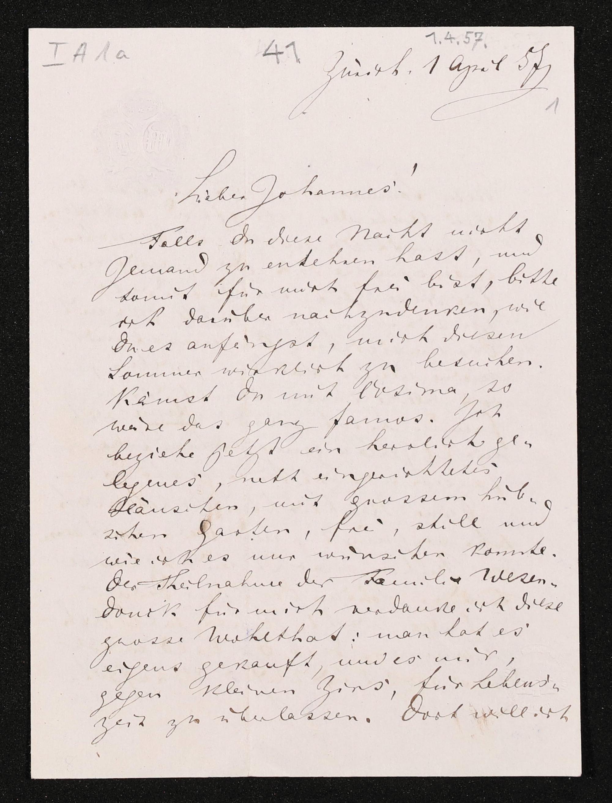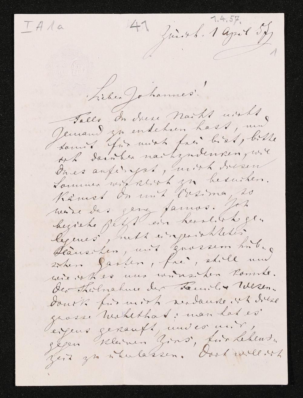 eigenhändiger Brief von Richard Wagner an Hans von Bülow