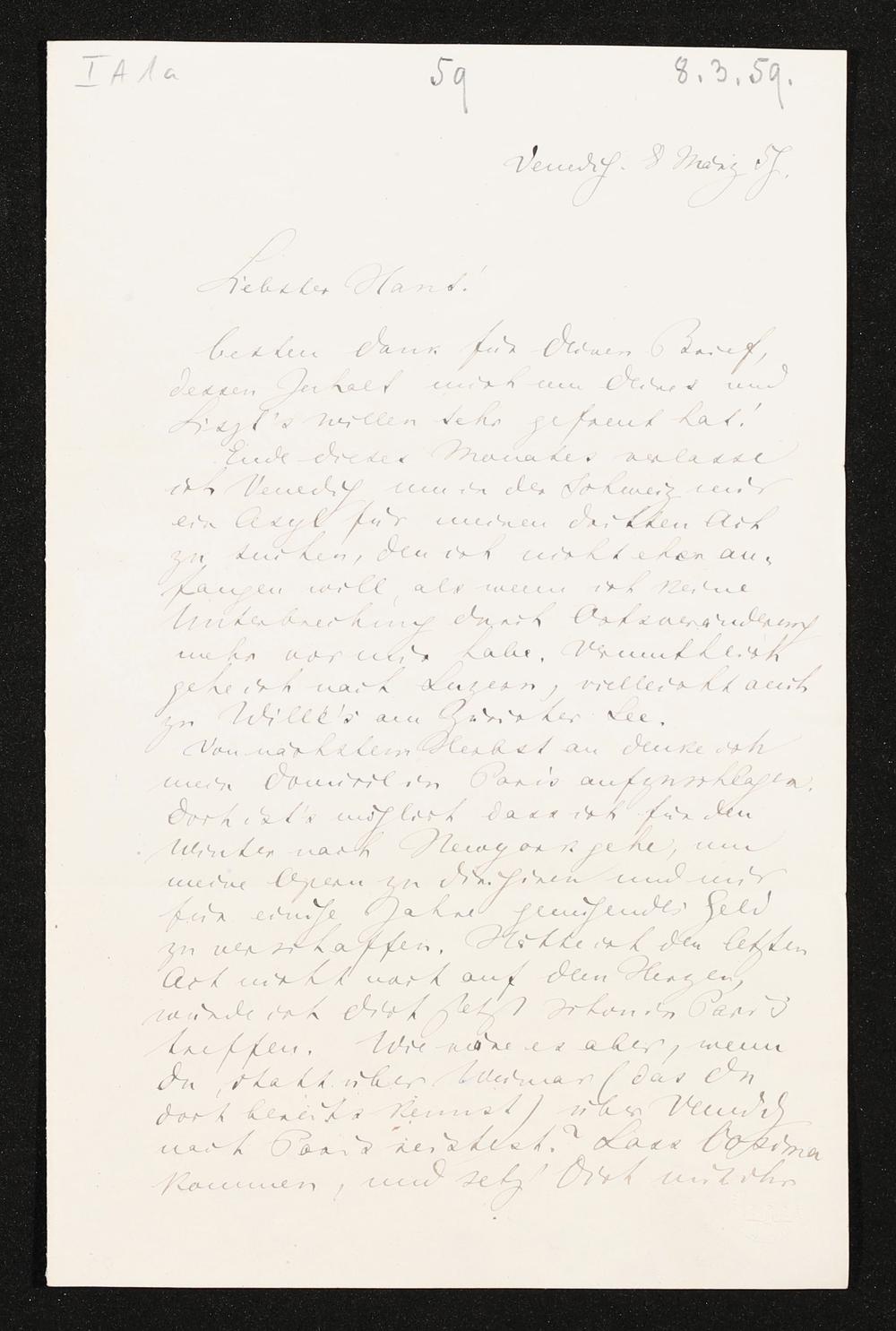 eigenhändiger Brief von Richard Wagner an Hans von Bülow
