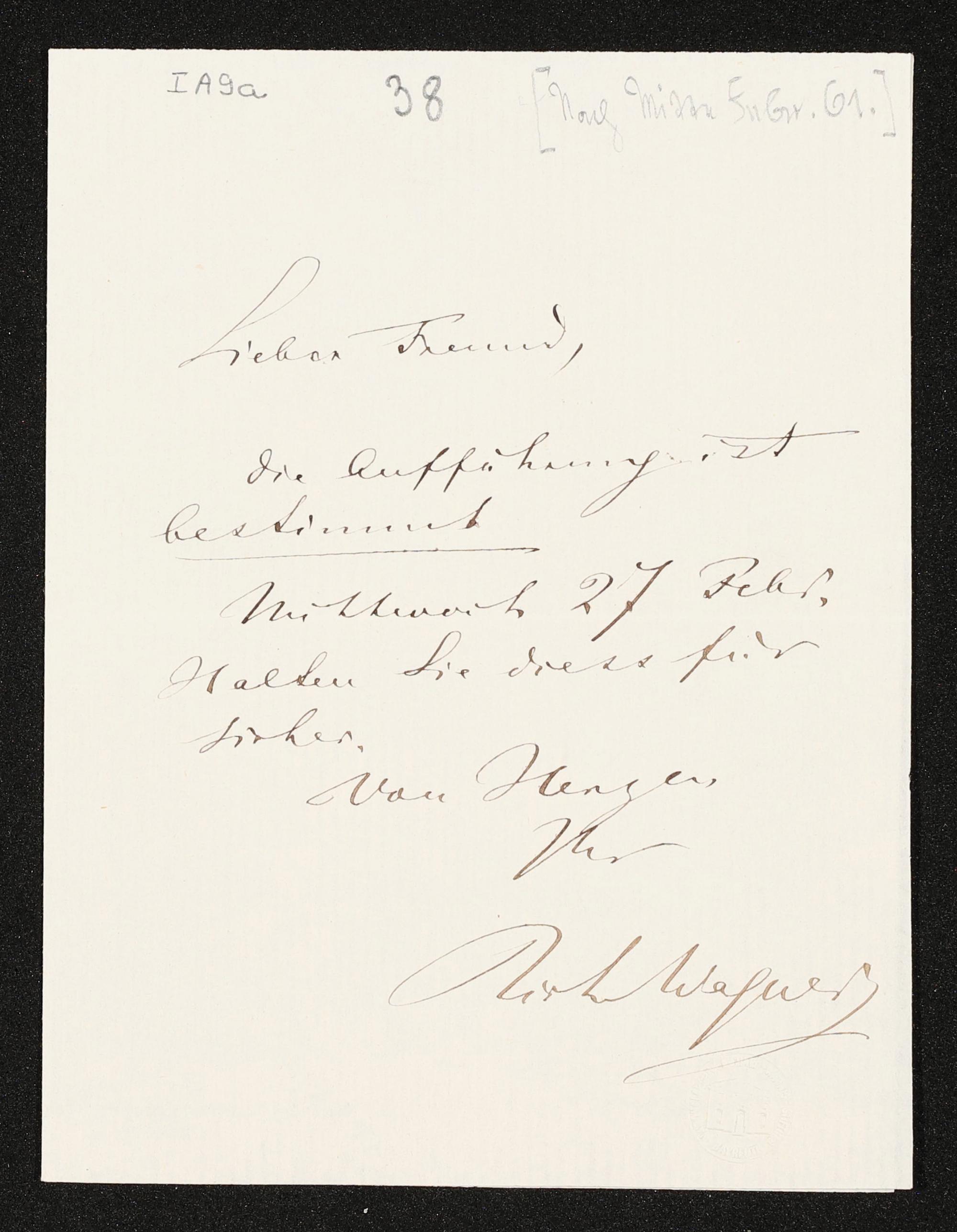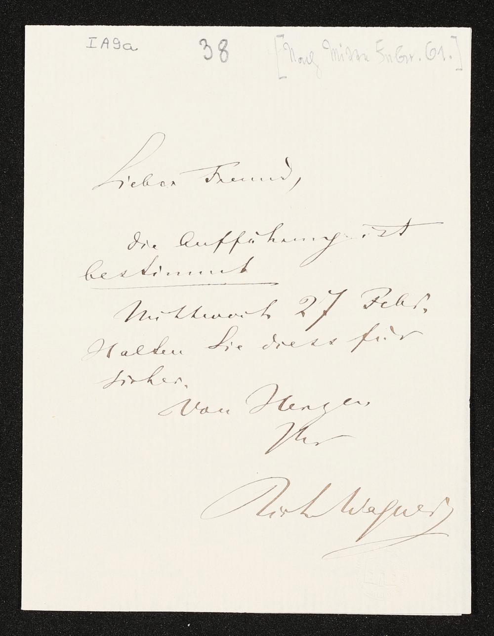 eigenhändiger Brief von Richard Wagner an Otto Wesendonck