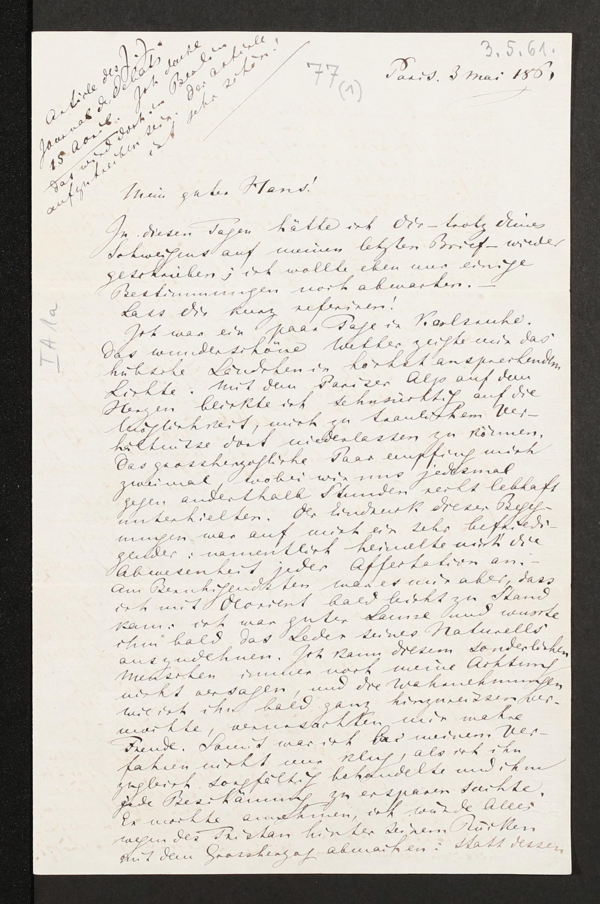 eigenhändiger Brief von Richard Wagner an Hans von Bülow
