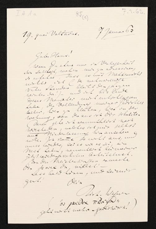 eigenhändiger Brief von Richard Wagner an Hans von Bülow