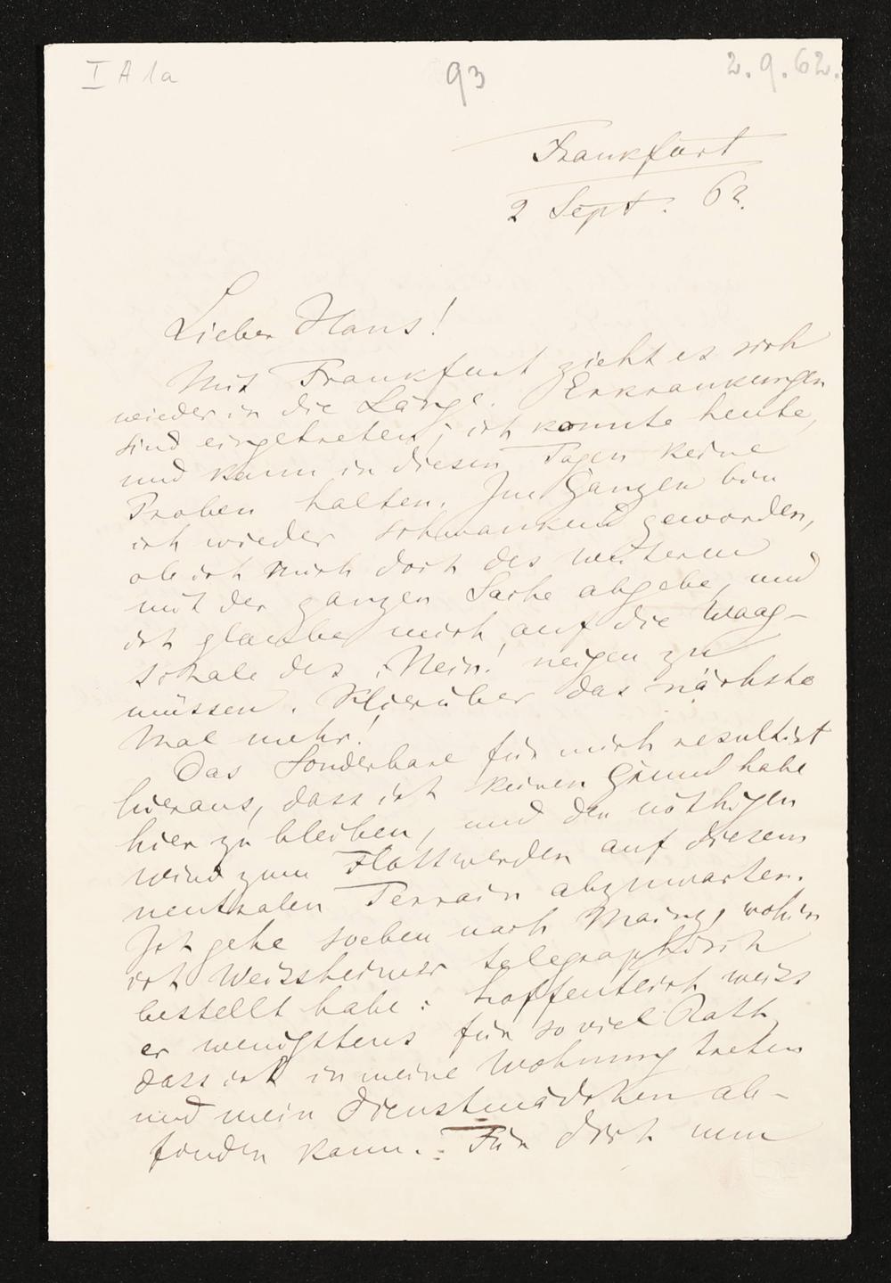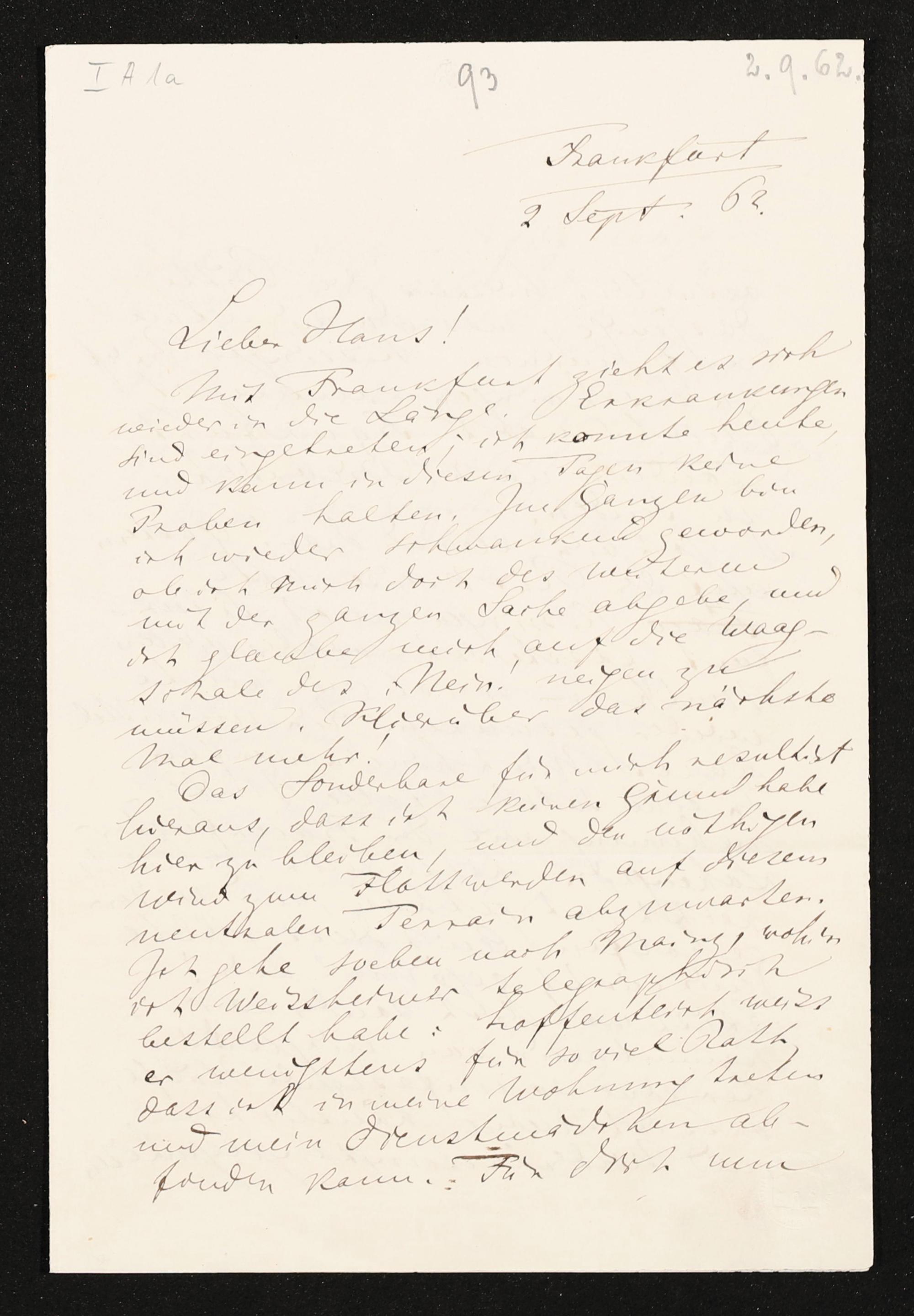 eigenhändiger Brief von Richard Wagner an Hans von Bülow