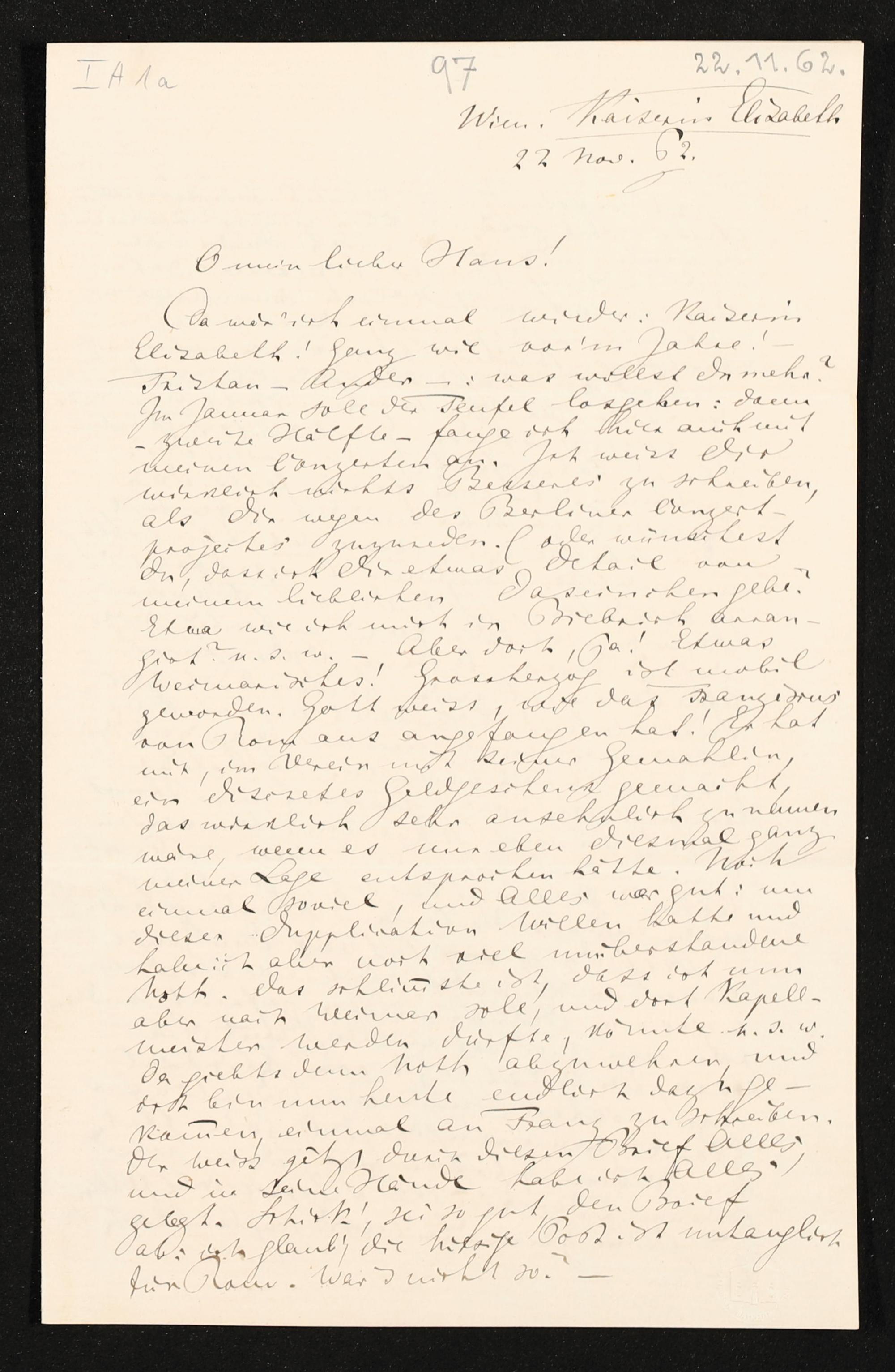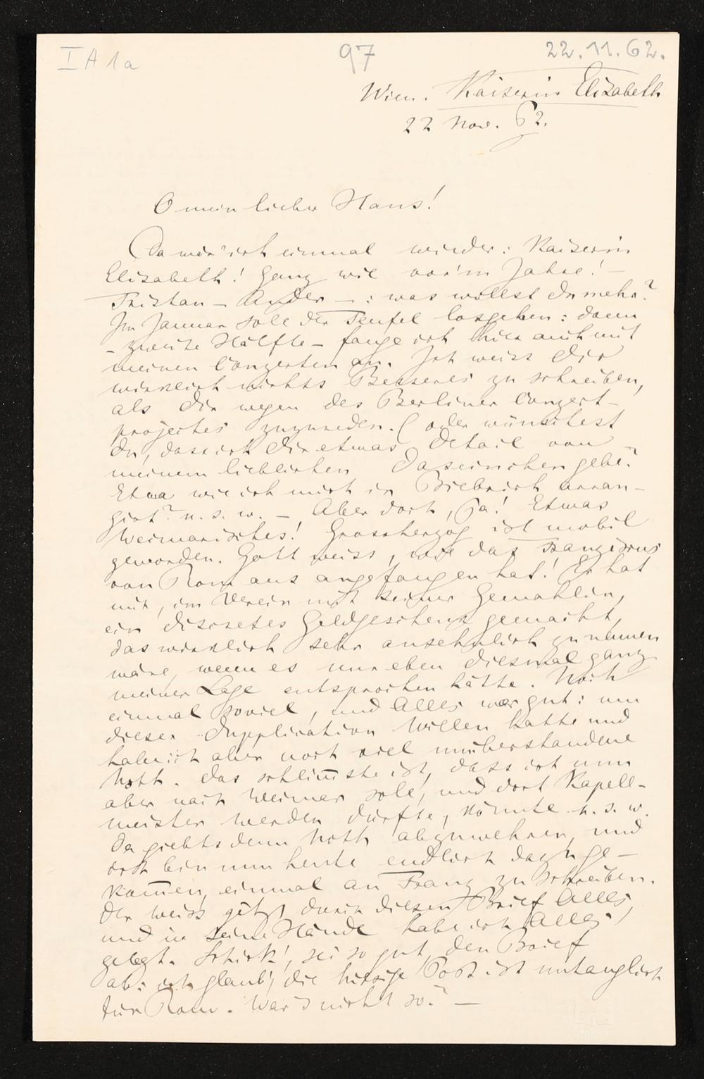 eigenhändiger Brief von Richard Wagner an Hans von Bülow