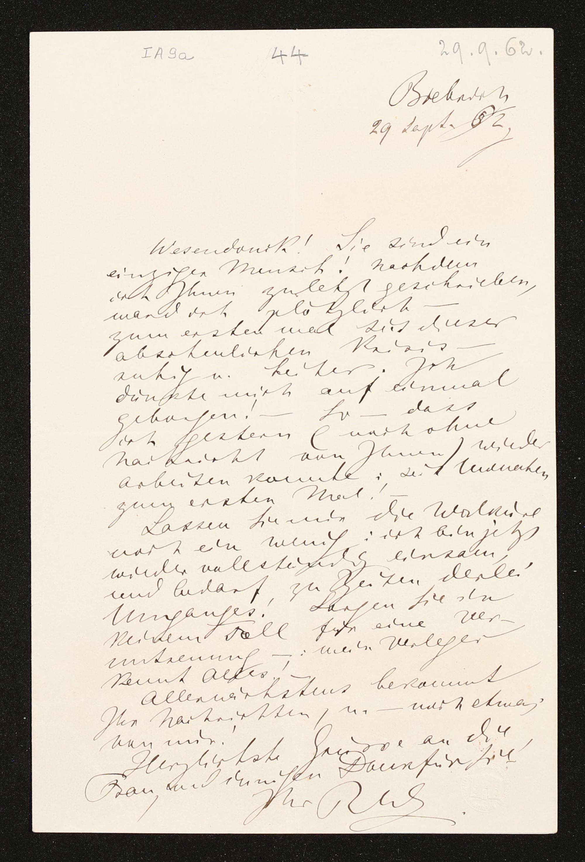 eigenhändiger Brief von Richard Wagner an Otto Wesendonck