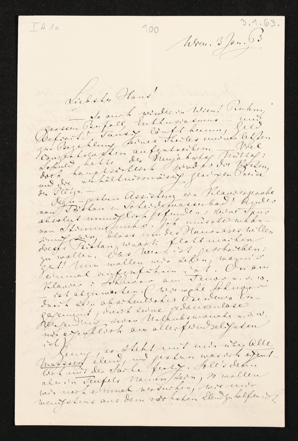 eigenhändiger Brief von Richard Wagner an Hans von Bülow