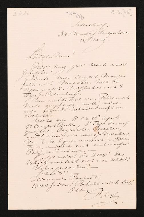 eigenhändiger Brief von Richard Wagner an Hans von Bülow