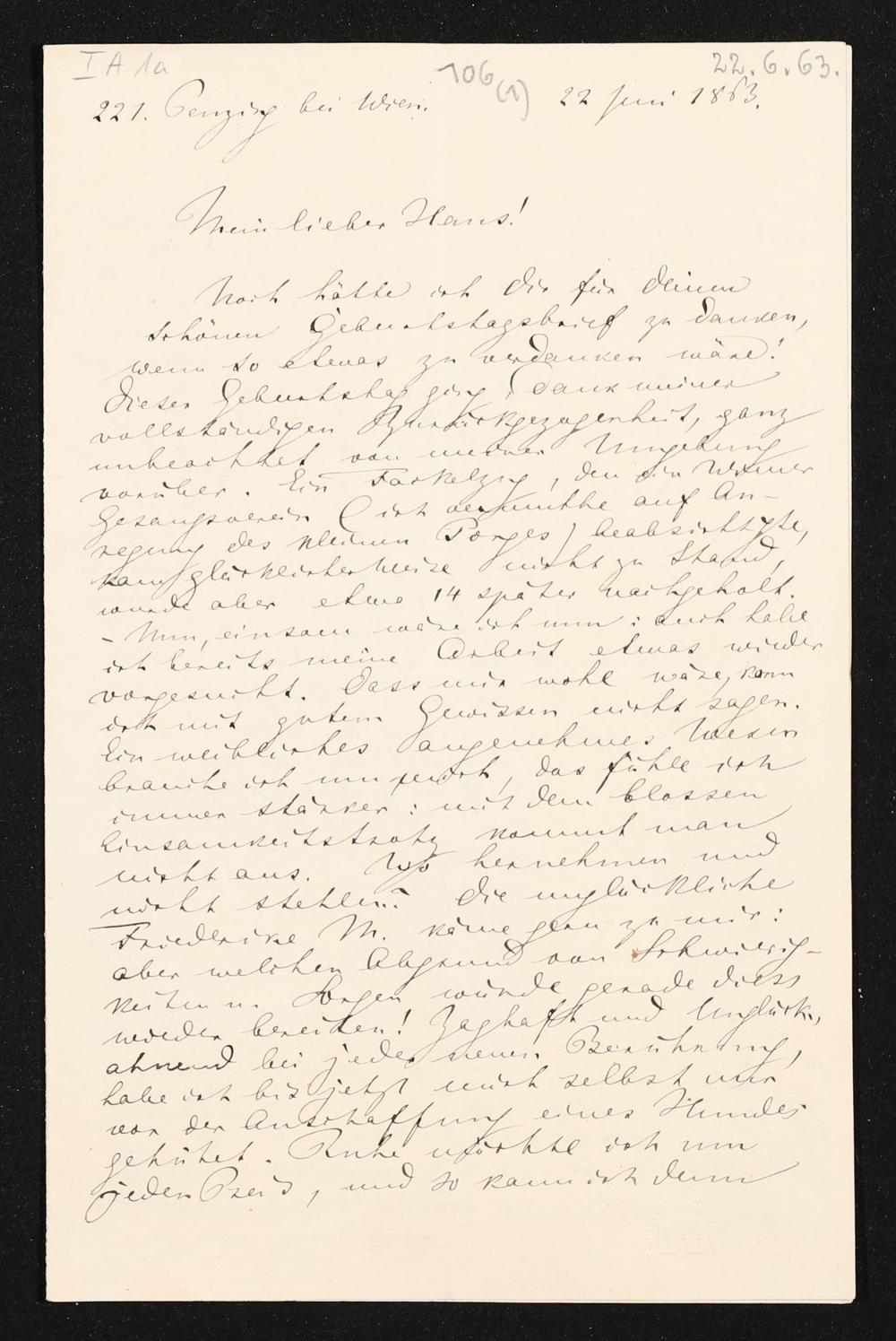 eigenhändiger Brief von Richard Wagner an Hans von Bülow