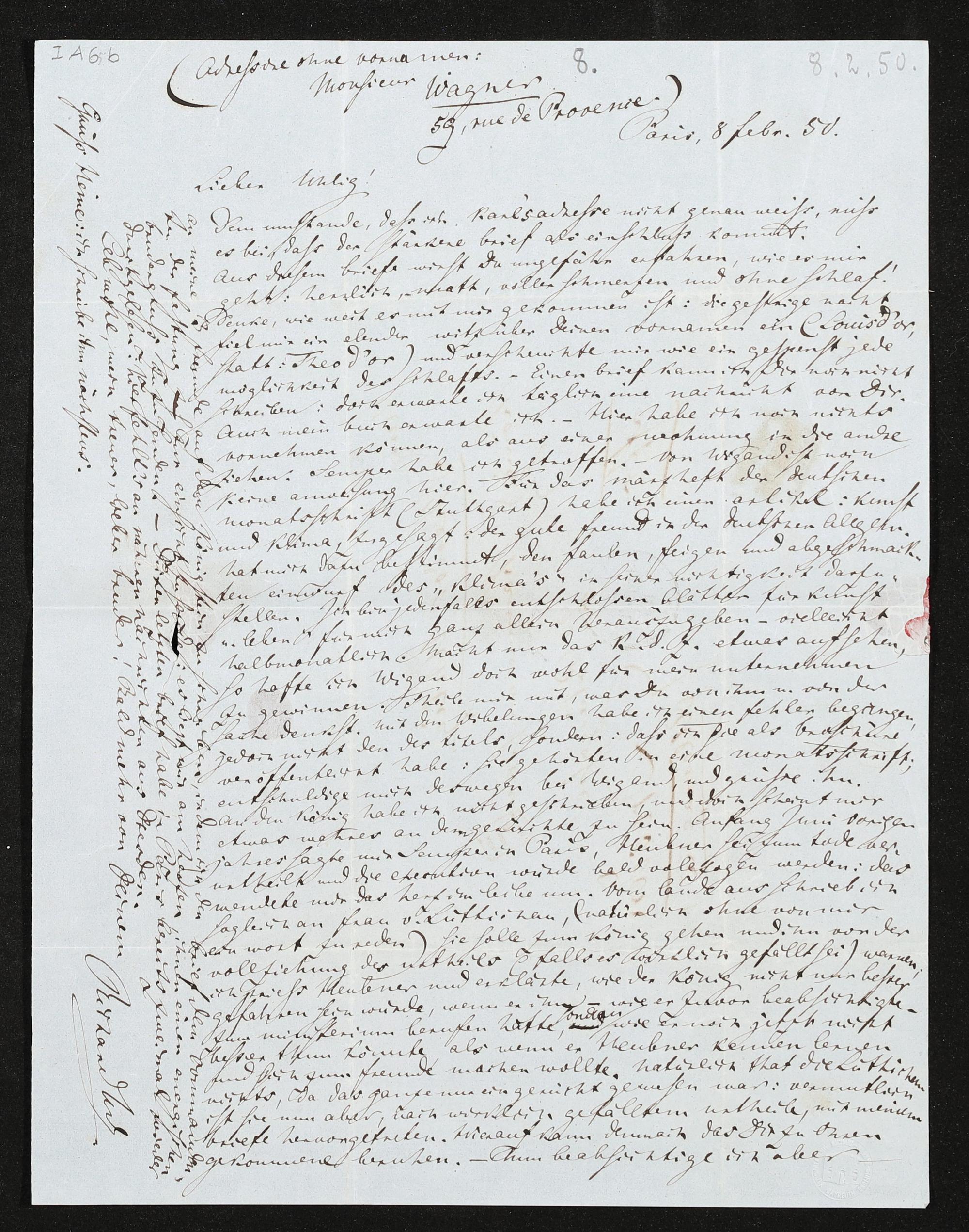 eigenhändiger Brief von Richard Wagner an Theodor Uhlig