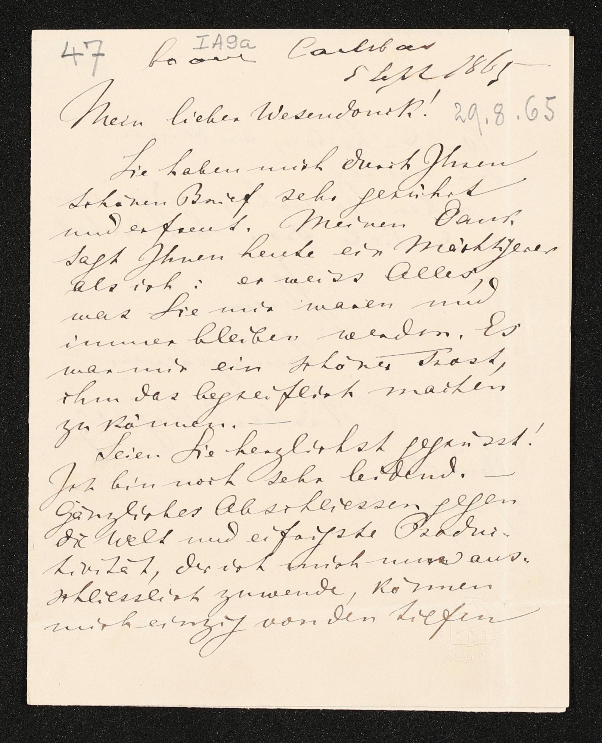 eigenhändiger Brief von Richard Wagner an Otto Wesendonck