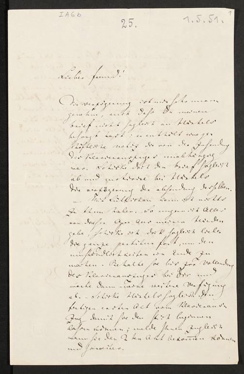 eigenhändiger Brief von Richard Wagner an Theodor Uhlig
