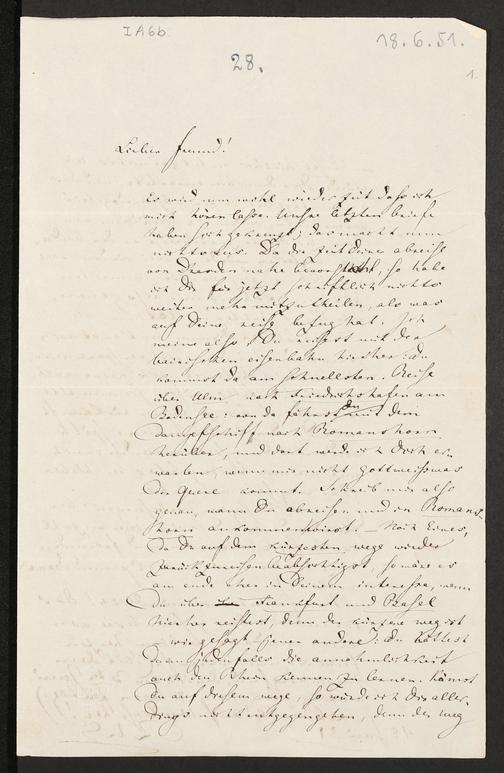 eigenhändiger Brief von Richard Wagner an Theodor Uhlig