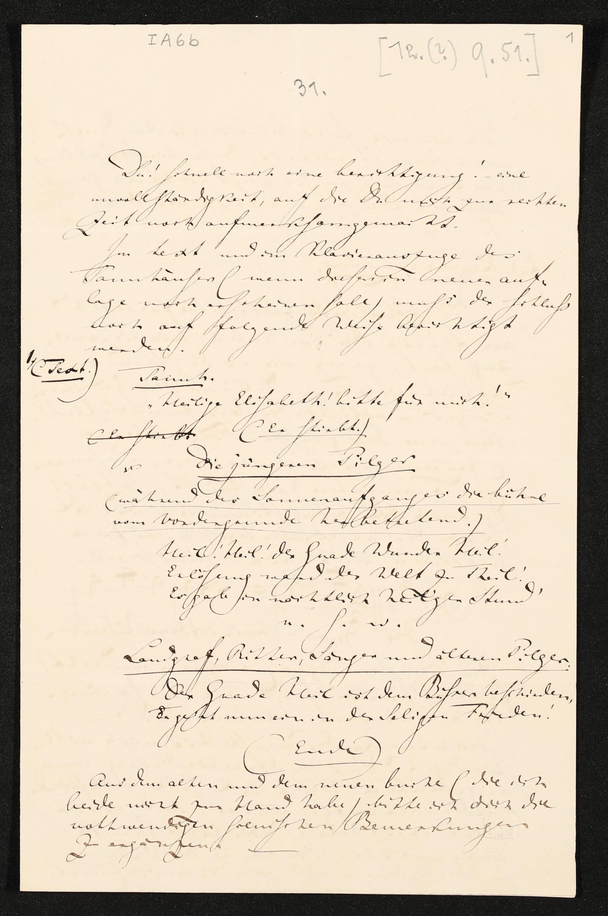 eigenhändiger Brief von Richard Wagner an Theodor Uhlig