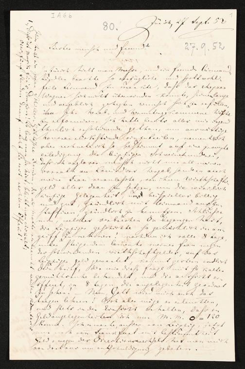 eigenhändiger Brief von Richard Wagner an Theodor Uhlig