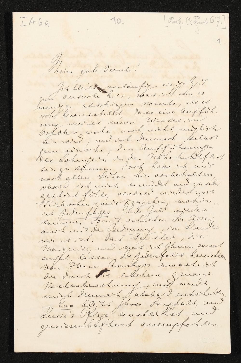 eigenhändiger Brief von Richard Wagner an Verena Stocker