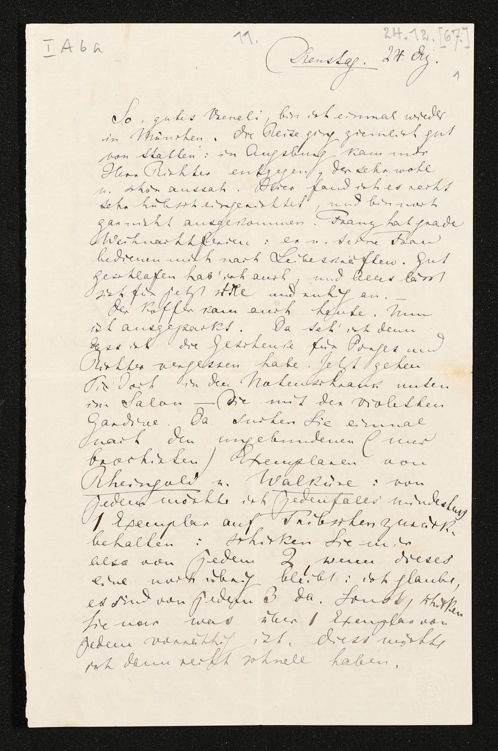 eigenhändiger Brief von Richard Wagner an Verena Stocker