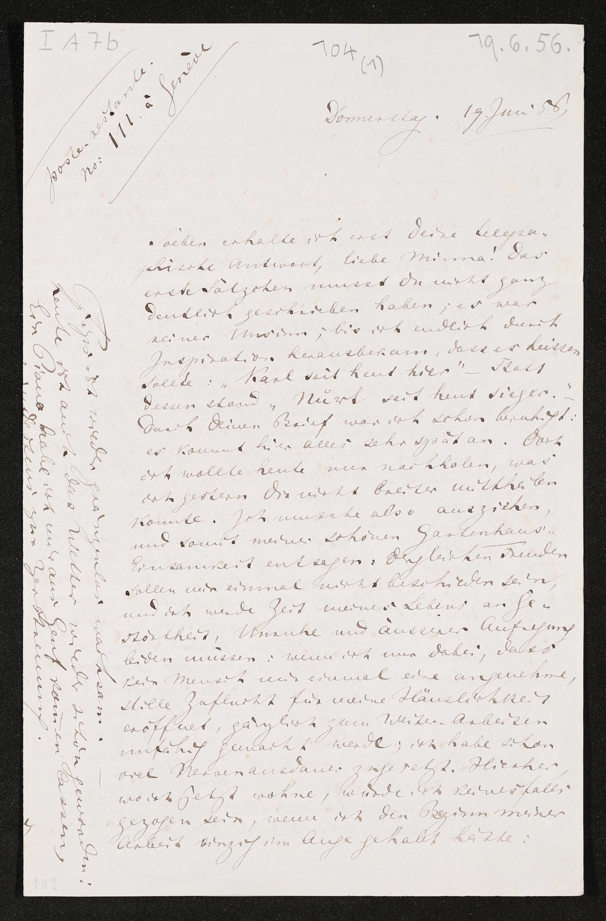 eigenhändiger Brief von Richard Wagner an Minna Wagner