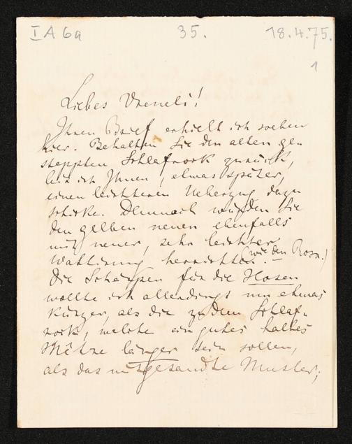eigenhändiger Brief von Richard Wagner an Verena Stocker