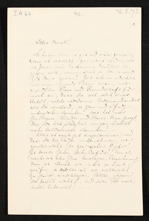 eigenhändiger Brief von Richard Wagner an Verena Stocker