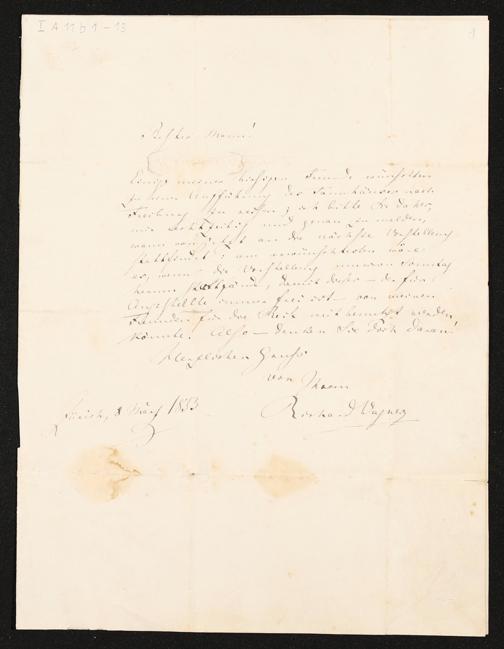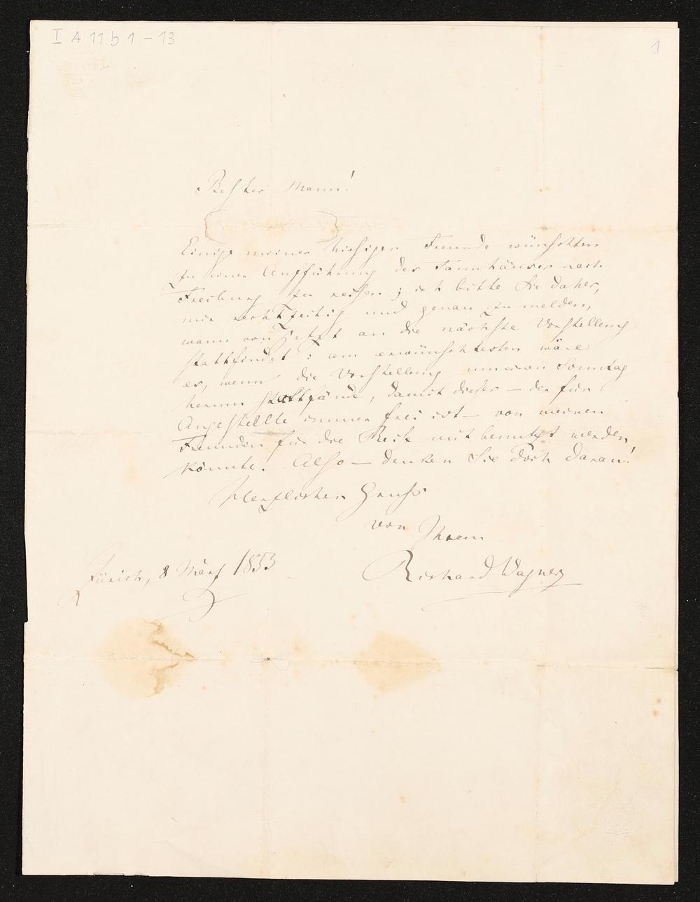 eigenhändiger Brief von Richard Wagner an Rudolf Schöneck