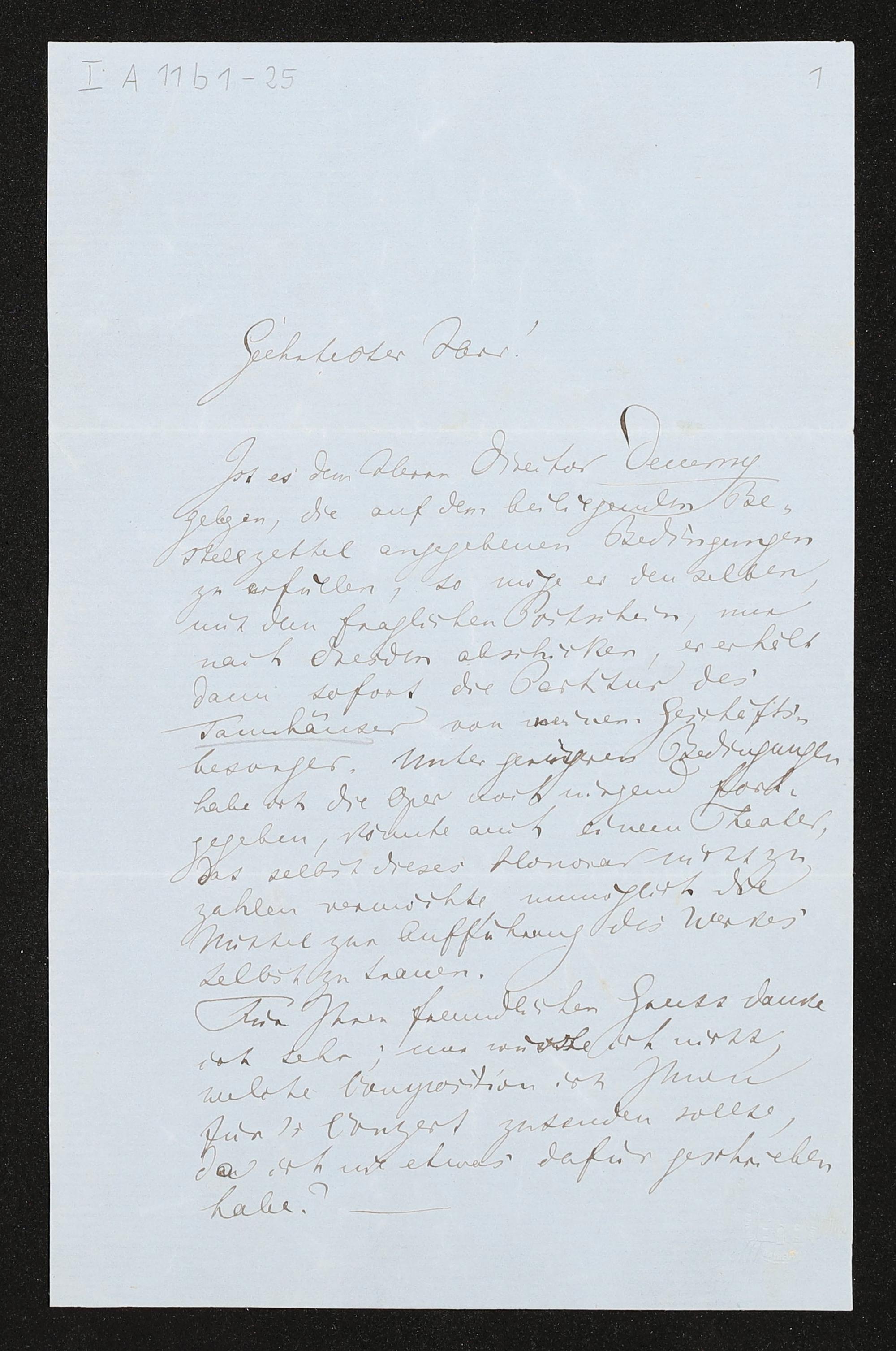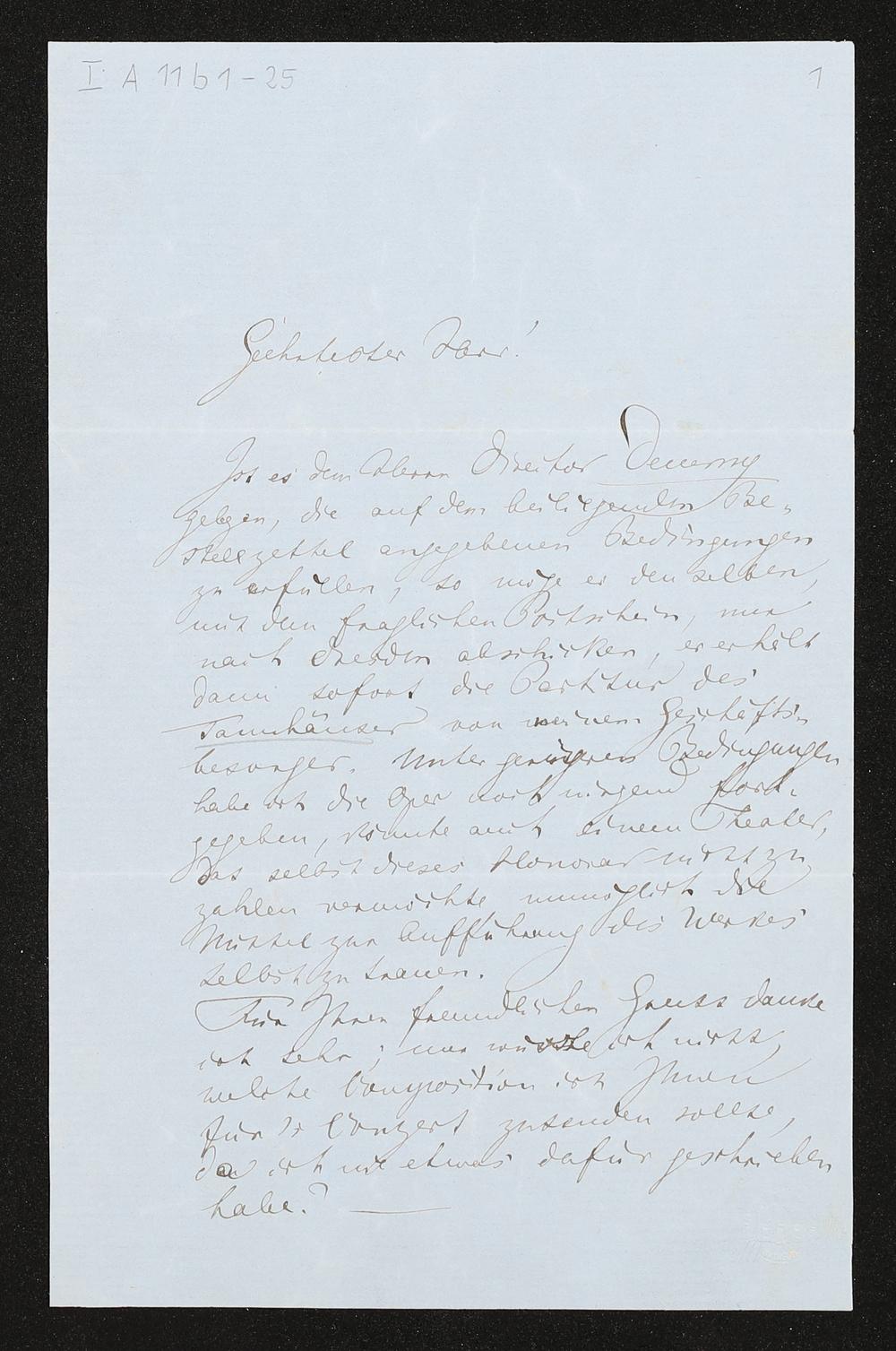 eigenhändiger Brief von Richard Wagner an Ludwig Wollrabe