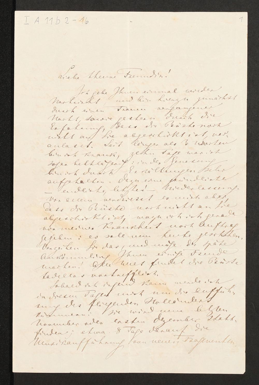 eigenhändiger Brief von Richard Wagner an Eliza Wille