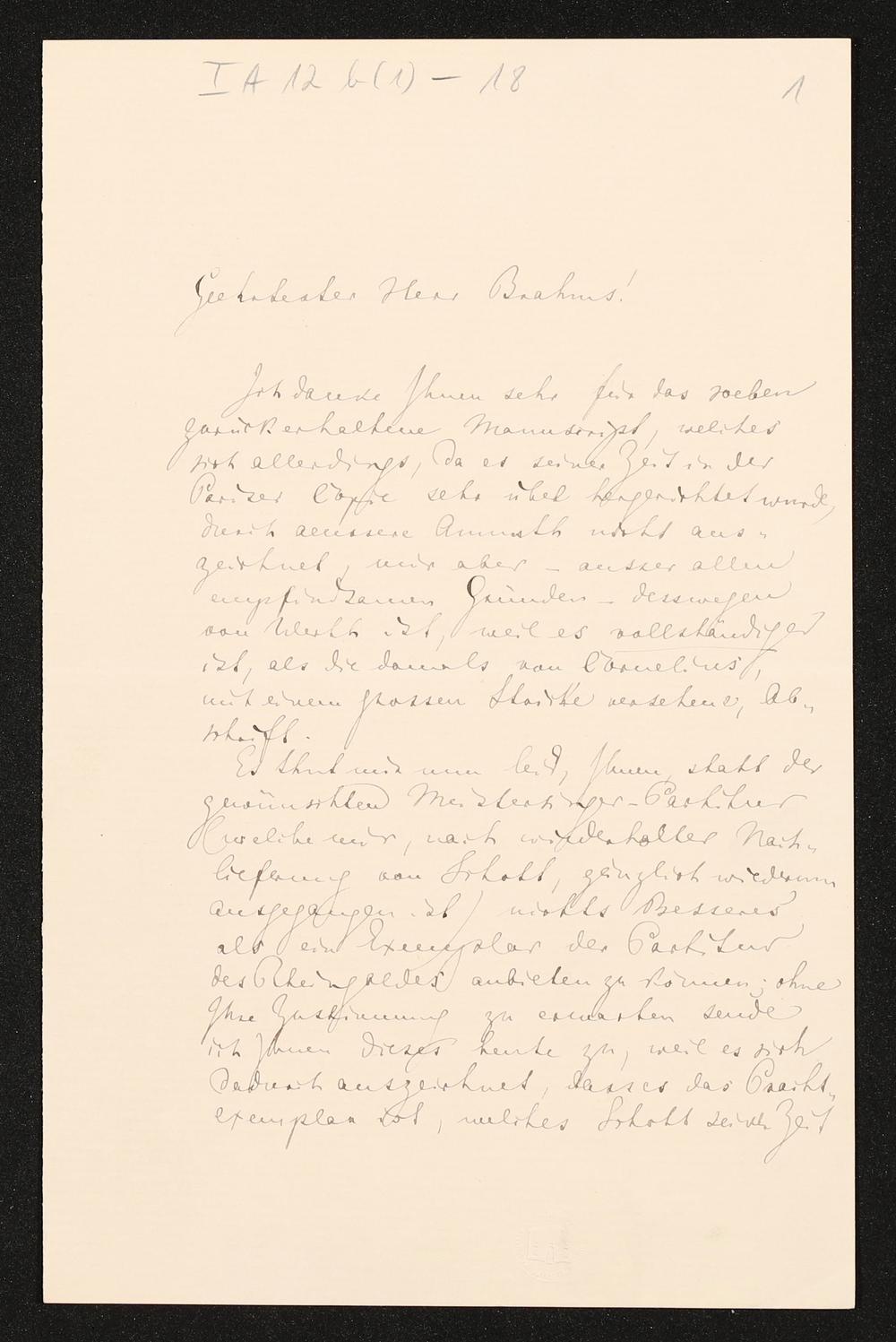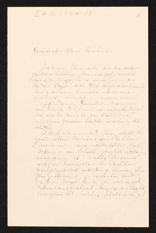 eigenhändiger Brief von Richard Wagner an Johannes Brahms