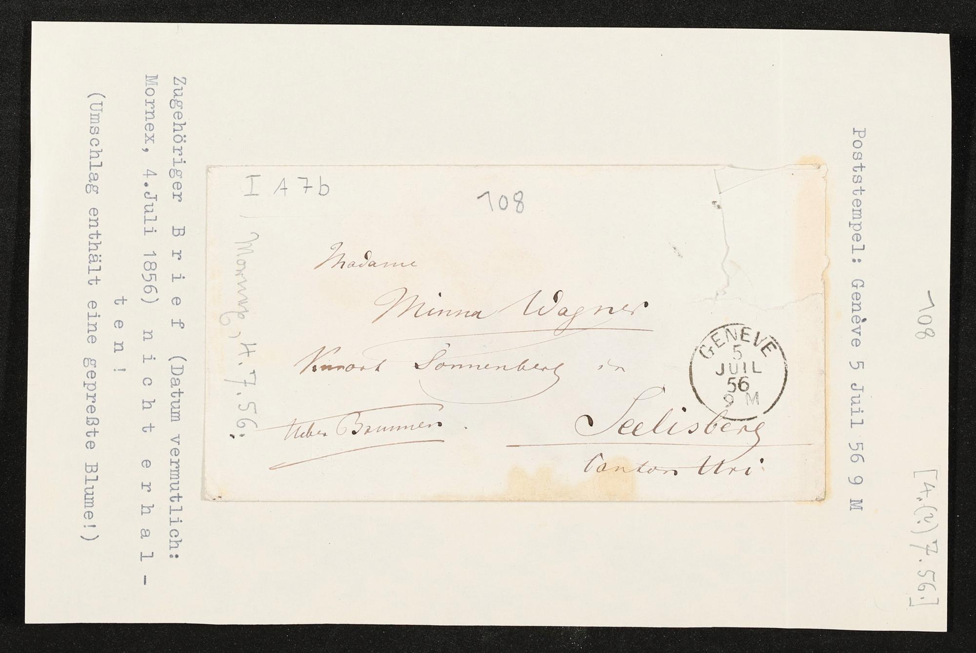 eigenhändig beschrifteter Briefumschlag von Richard Wagner an Minna Wagner