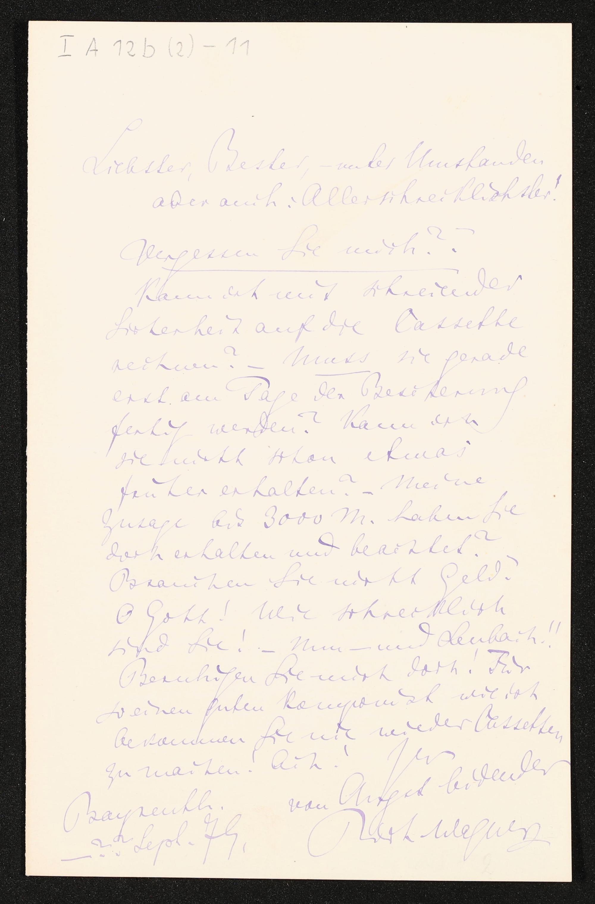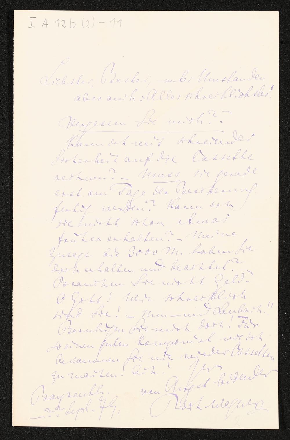 eigenhändiger Brief von Richard Wagner an Lorenz Gedon