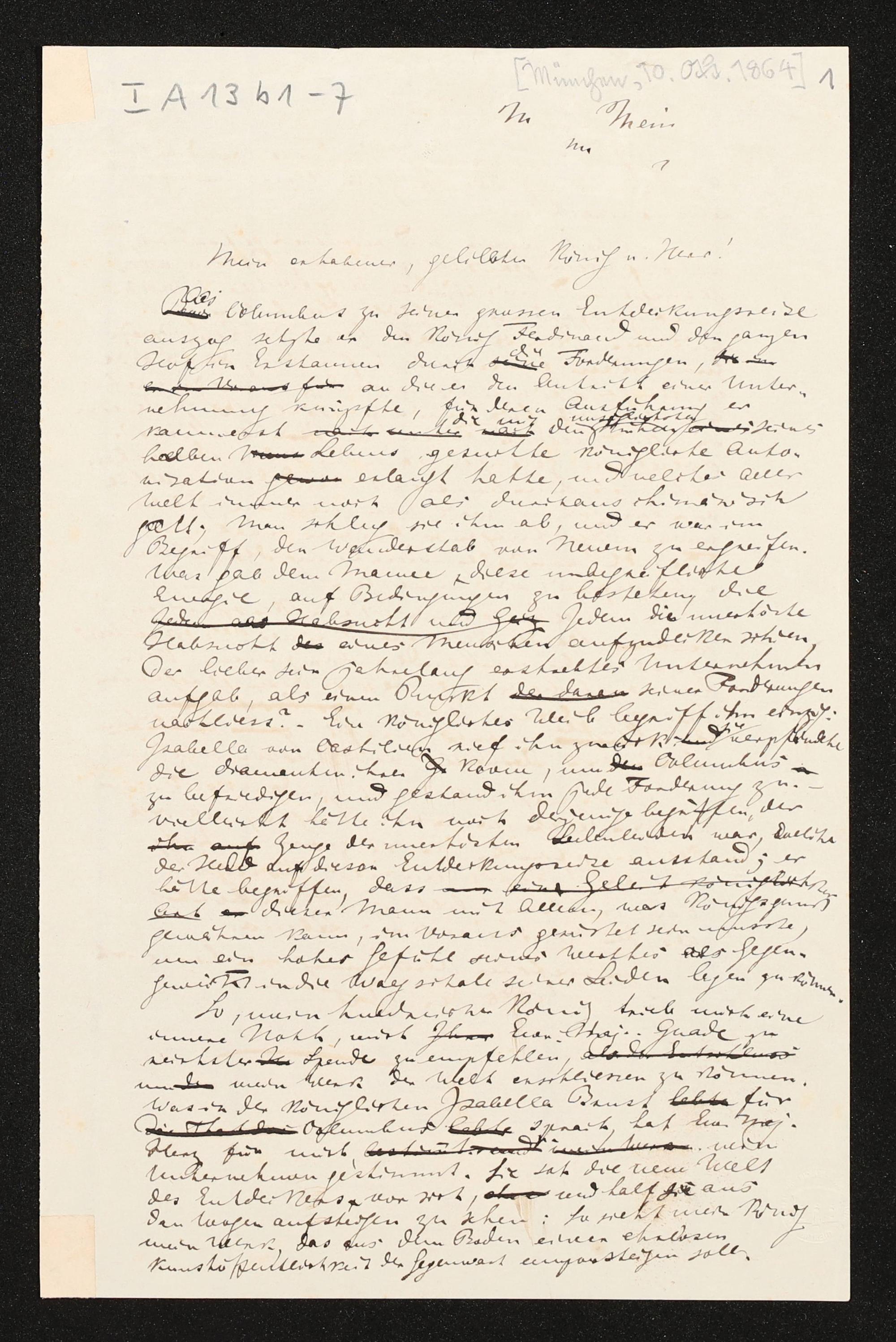 eigenhändiges Briefkonzept von Richard Wagner an König Ludwig II. von Bayern
