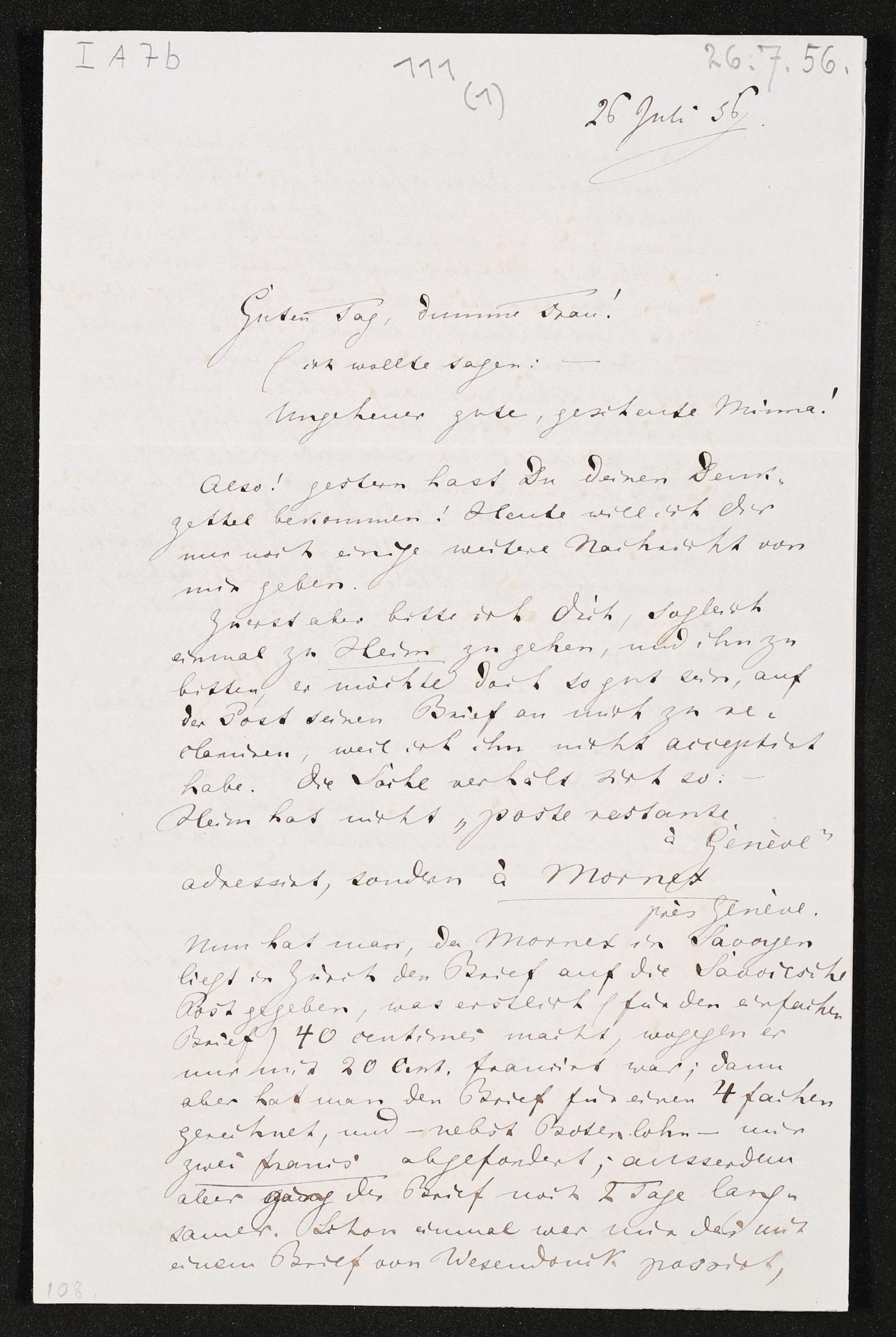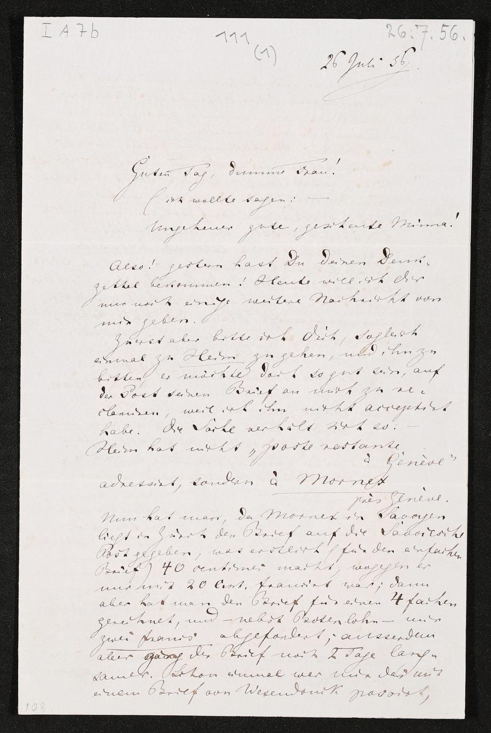 eigenhändiger Brief von Richard Wagner an Minna Wagner