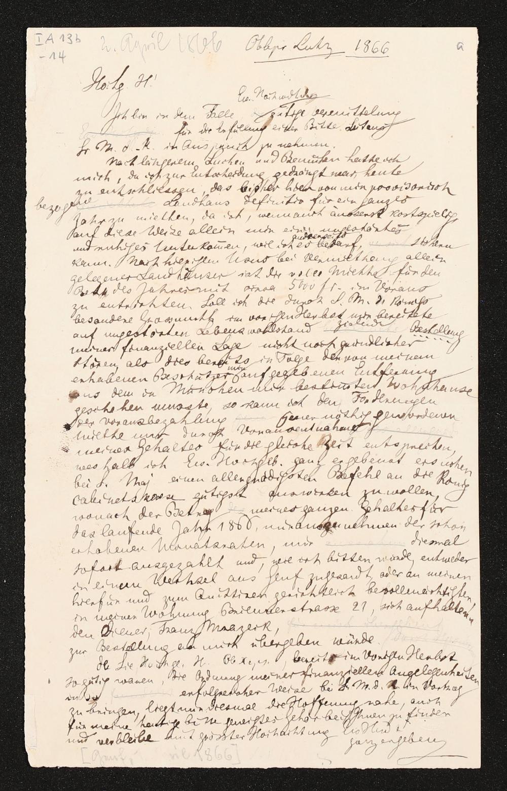 eigenhändiges Briefkonzept von Richard Wagner an Johann von Lutz